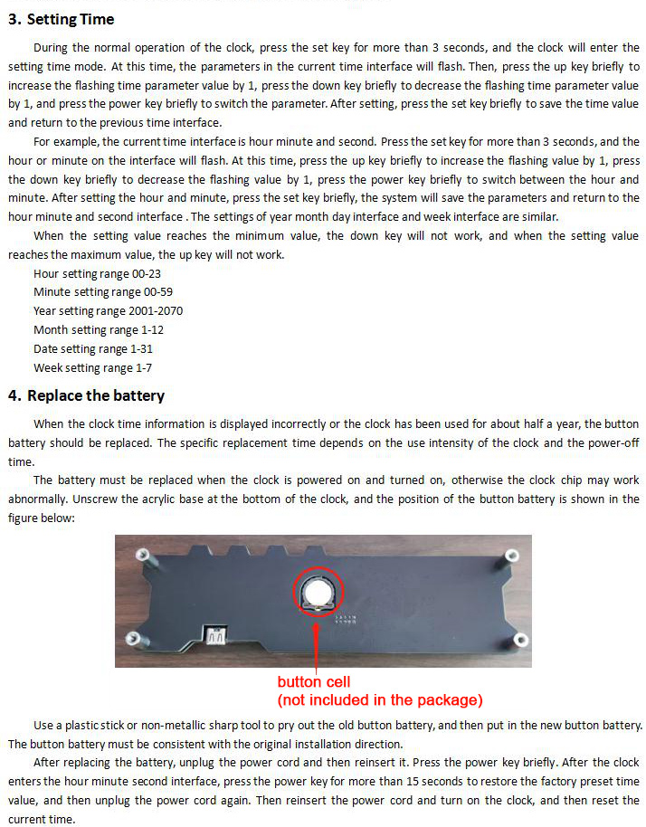 - Touch button and local time setting. No wifi network needed. Without remote control