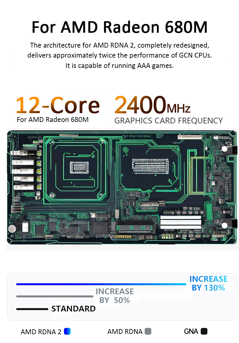 - Graphics: For AMD Radeon 680M graphics 12-core 2400MHz