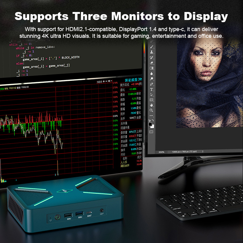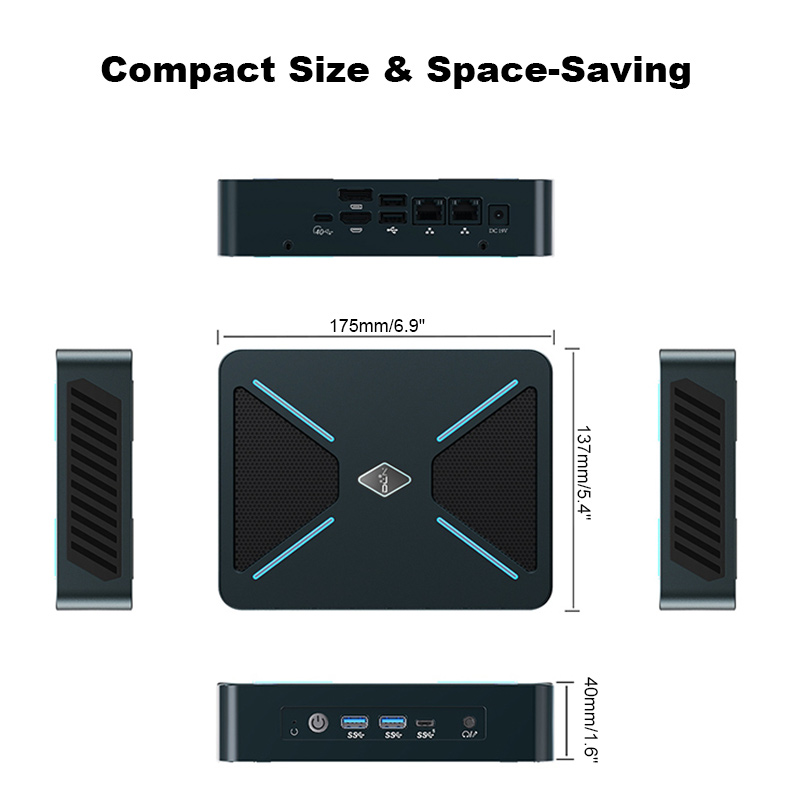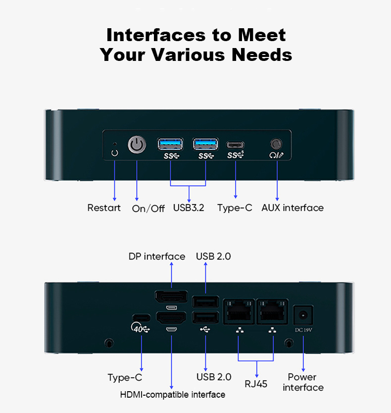 - Interfaces: USB4 (40Gbps/Type-c)*1, Type-C USB3.2 (10Gbps)*1, USB3.2 10Gbps*2, USB2.0 480Mbps*2, DP1.4 (maximum 4K 144Hz)*1 and LAN (2.5G)*2