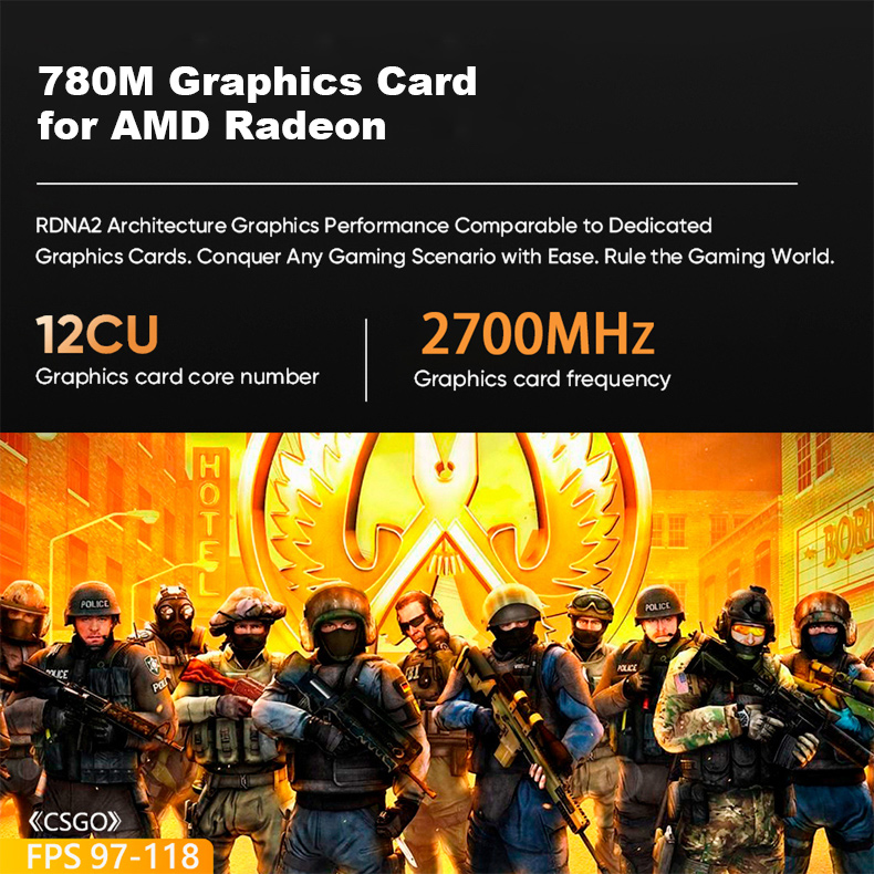DHD780U 8-Core 16-Thread Mini PC Mini Gaming Computer (Barebone) w/ R7 7840U for Games Entertainment