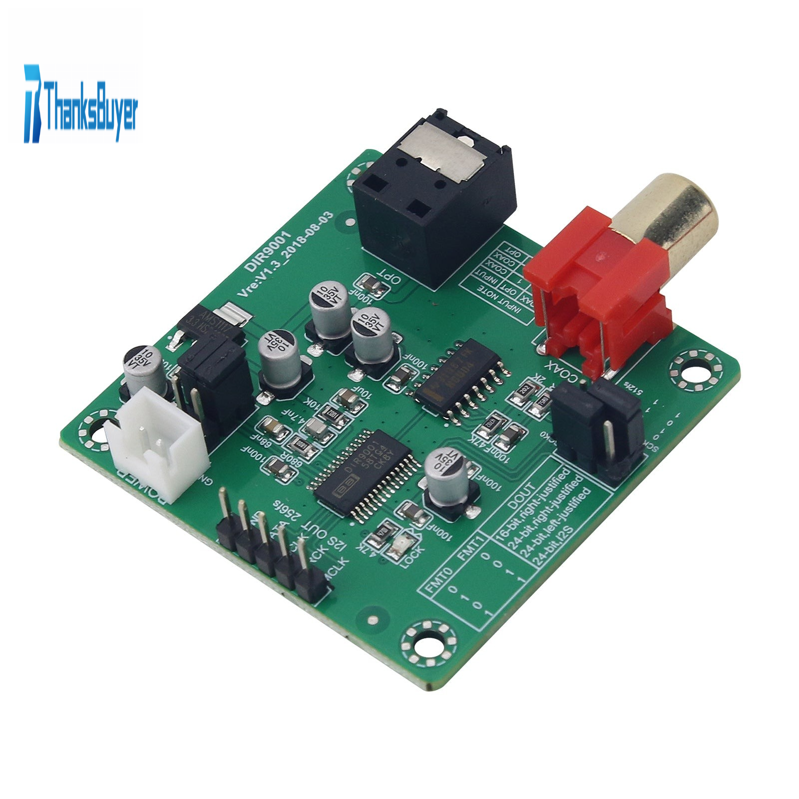 DIR9001 Coaxial Receiver Optical Receiver Module SPDIF To I2S 24Bit 96KHz With Optic Fiber Port