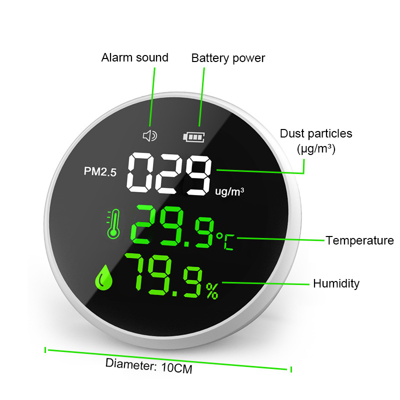 DM1305E 3-in-1 Round Air Quality Monitor 0-2000µg/m³ PM2.5 Monitor for PM2.5 Temperature & Humidity