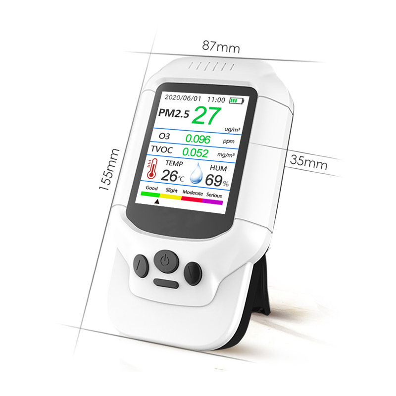 - Detection range: PM2.5 (0-999ug/M³); O3 (0.000-5.000ppm); TVOC (0.001-9.999Mg/M³)