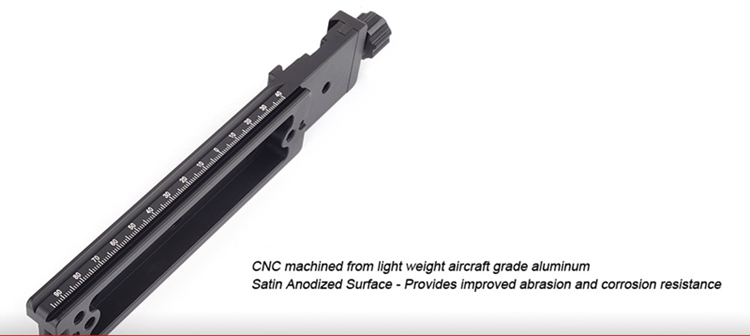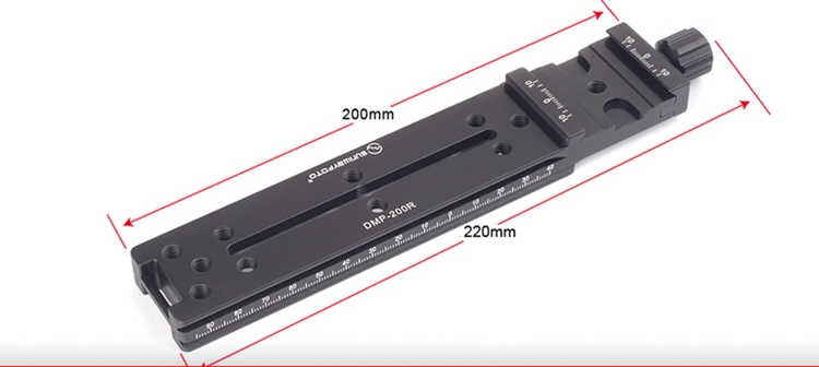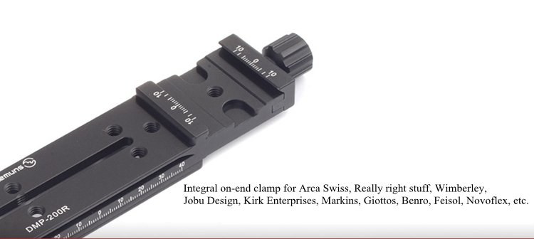 DMP-200R Multi-Purpose Rail Nodal Slide with screw-knob clamp, CNC cutting machine from light weight aircraft-grade aluminum, stain anodized surface finish for better abrasion and corrosion resistant. Suitable for all Arca-Swiss style plates.
