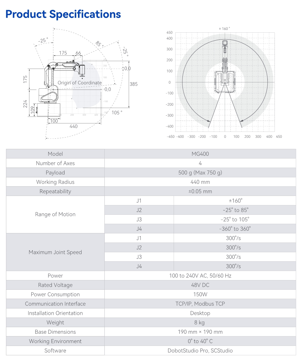 * With drag-to-teach, the MG400 is designed to be easy to use. The MG400 lowers the barrier of entry into automation and is favored by numerous small and medium enterprises.