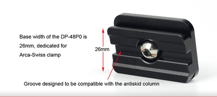 DP-480P0 is dedicatedly designed for Arca P0 heads with 32mm QR clamp, specially for 801213, also compatible with 801214 and 801215; This QR plate with slide-proof rubber spacers can be applied to different DSLR and ILDC securely.