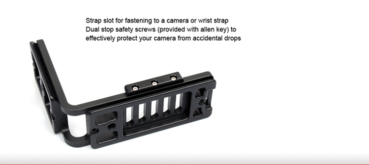 Using L bracket can maximize the stability and efficiency of using the camera on the ball head when switching the horizontal and vertical composition. Can completely eliminates the common gross positioning shifts in changing the horizontal composition to vertical composition, and the depth of the scenes catching in horizontal aspect will not be effected when changing the composition.