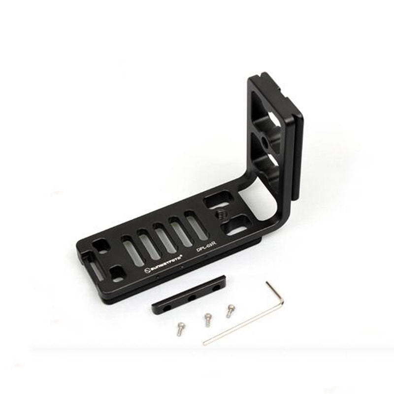 DPL-03R universal L bracket, one piece CNC cutting machined from light weight aircraft-grade aluminum, stain anodized surface finish for better abrasion and corrosion resistant. For Arca-Swiss style. Ideal for variety of traditional 135/120 SLR film cameras and digital SLR cameras with LCD protector.