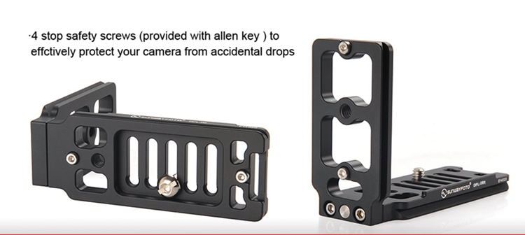 Using an L bracket can maximize the stability and efficiency of using the camera on the ball head when switching the horizontal and vertical composition. Can completely eliminates the common gross positioning shifts in changing the horizontal composition to vertical composition, and the depth of the scenes catching in horizontal aspect will not be effected when changing the composition.