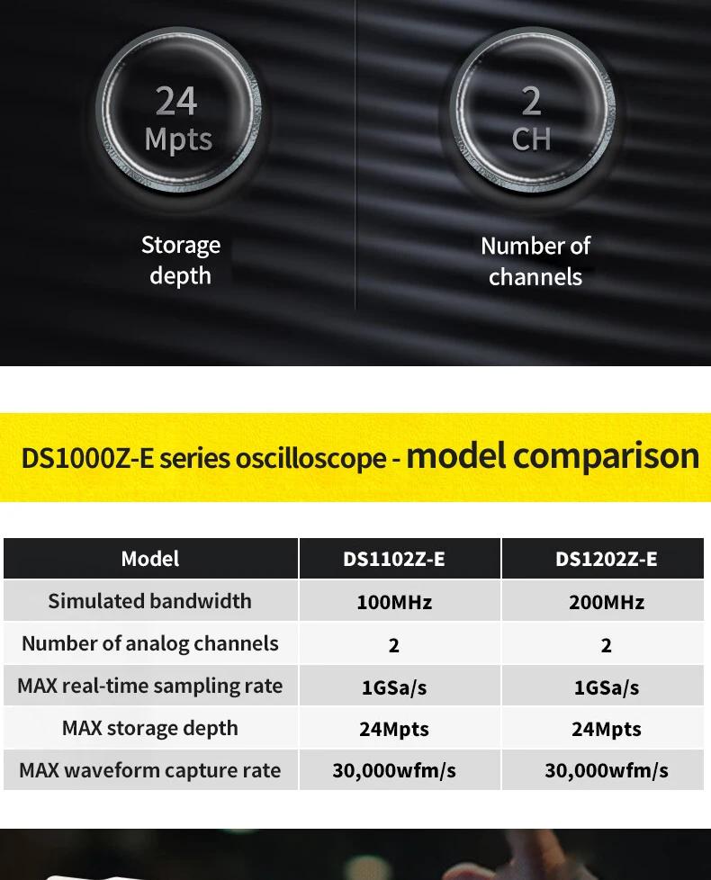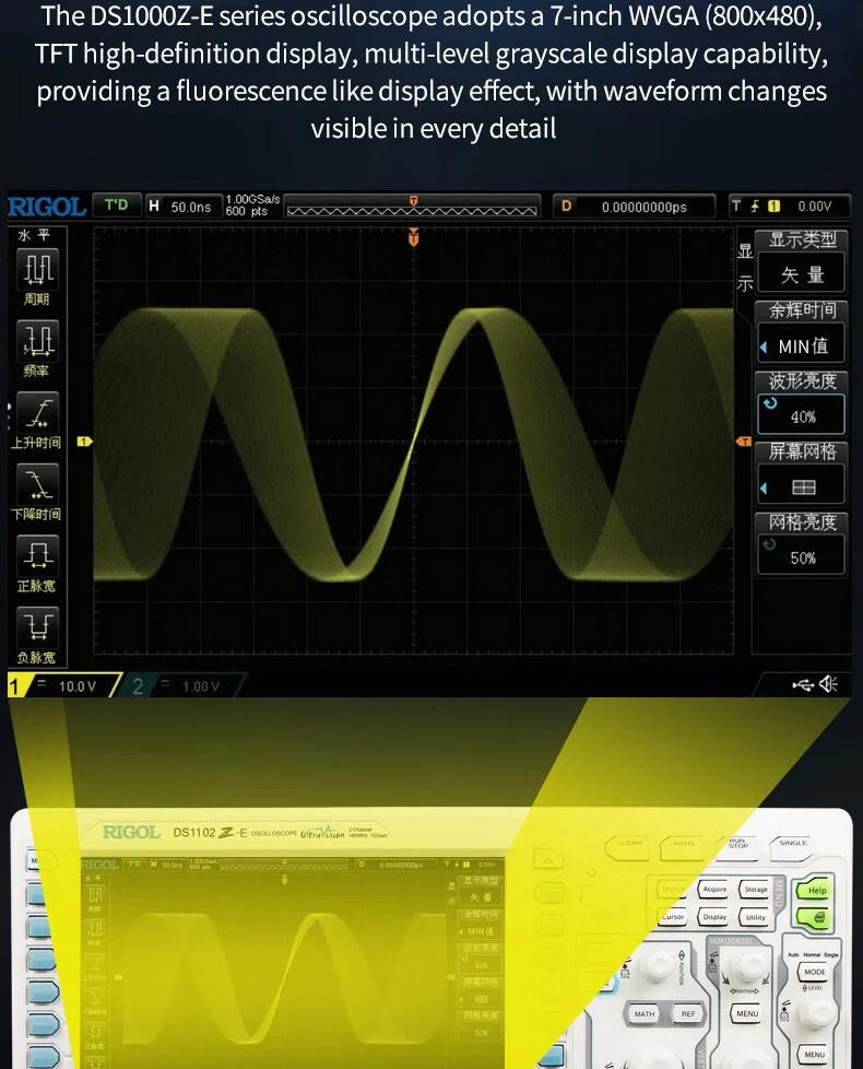 DS1202Z-E 200MHz Dual Channel High Performance Digital Oscilloscope with 7-inch TFT LCD Screen with 2 Original Probes