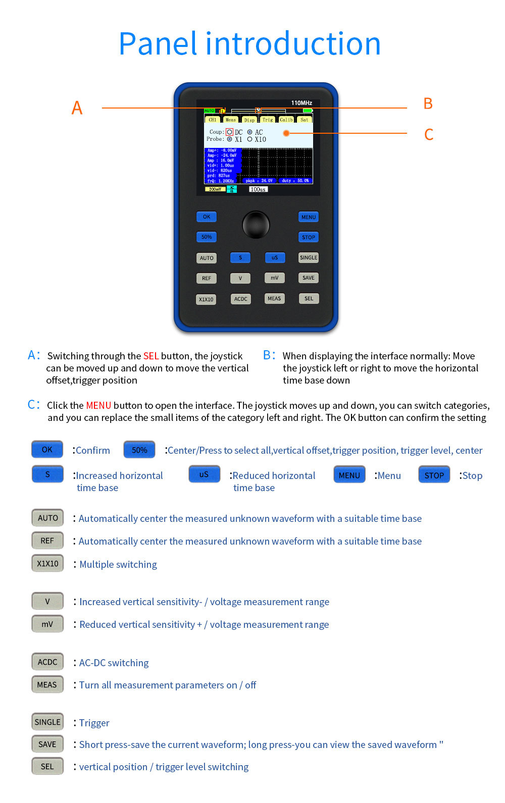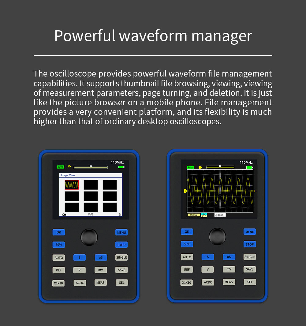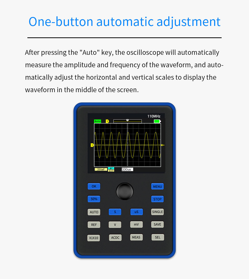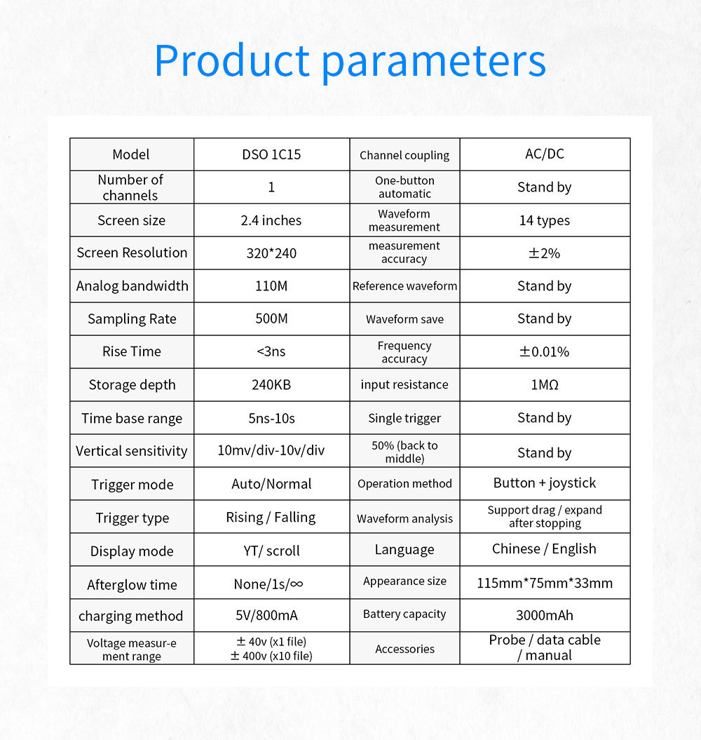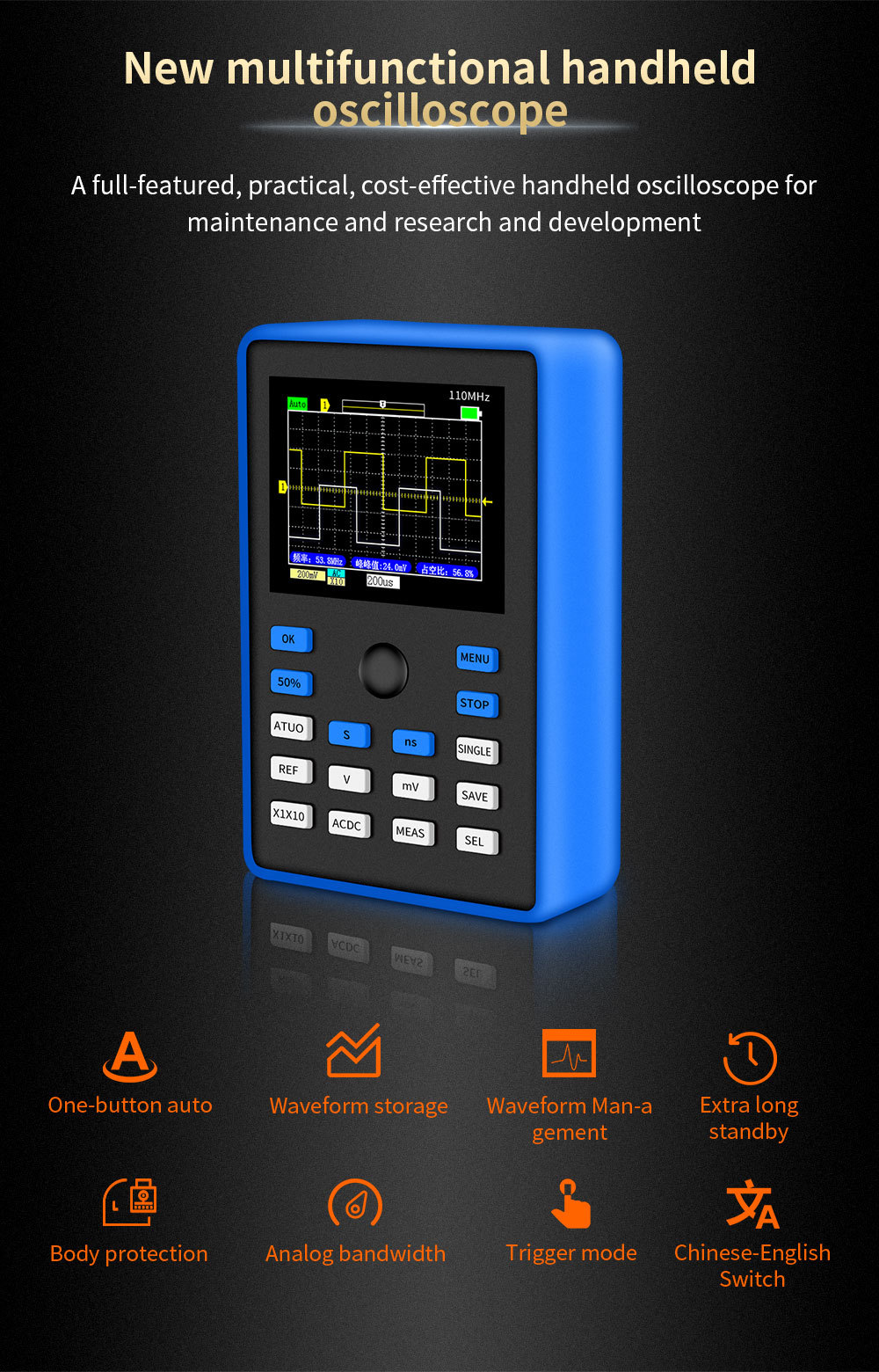 DSO1C15 Handheld Digital Oscilloscope 2.4" Screen 500 MS/s Sampling Rate 110MHz Analog Bandwidth