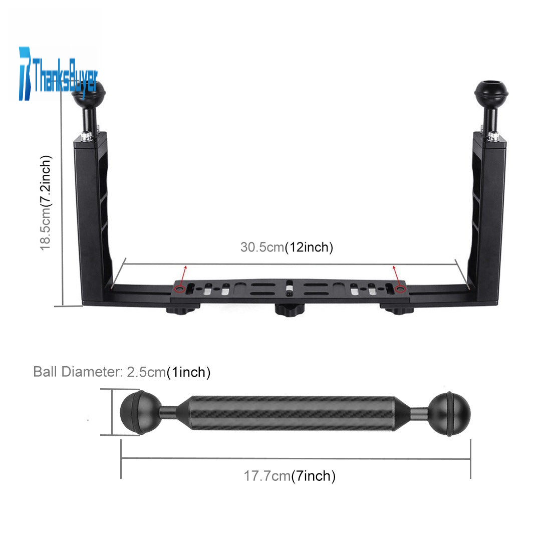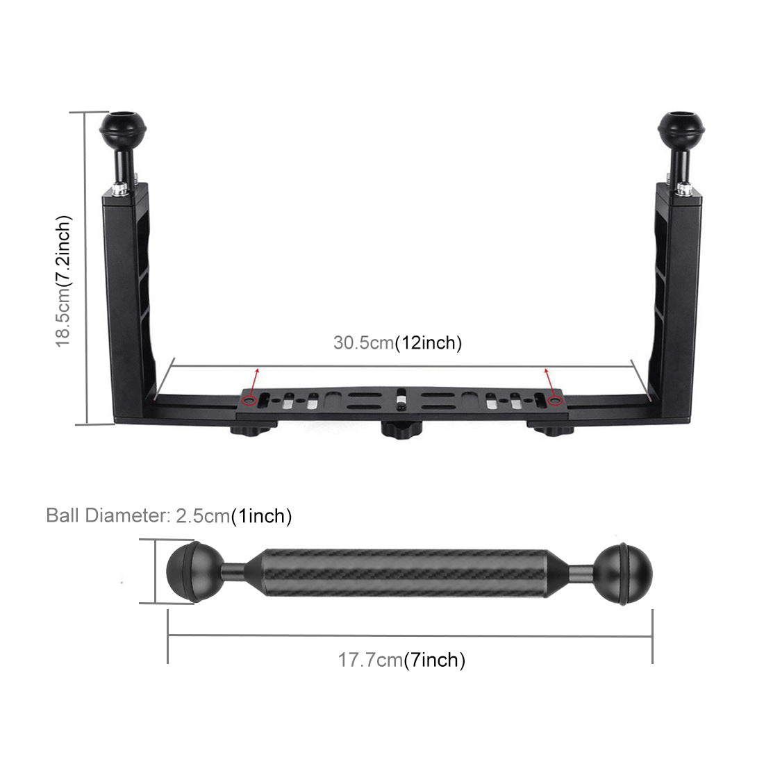 Dual Handle Handheld Stabilizer w/ Dual Ball Clamp Floating Arm For Underwater Camera Housings PU3041
