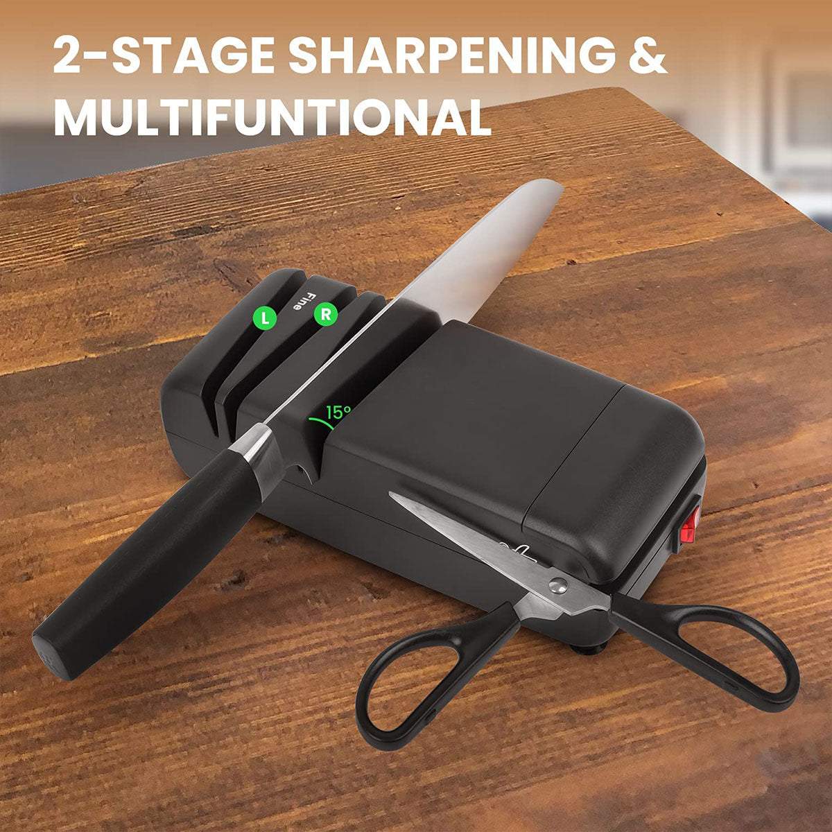 Electric Knife Sharpener Multifunctional Automatic Cut Sharpeners with 15-Degree Bevel Crude and Fine Grooves Black