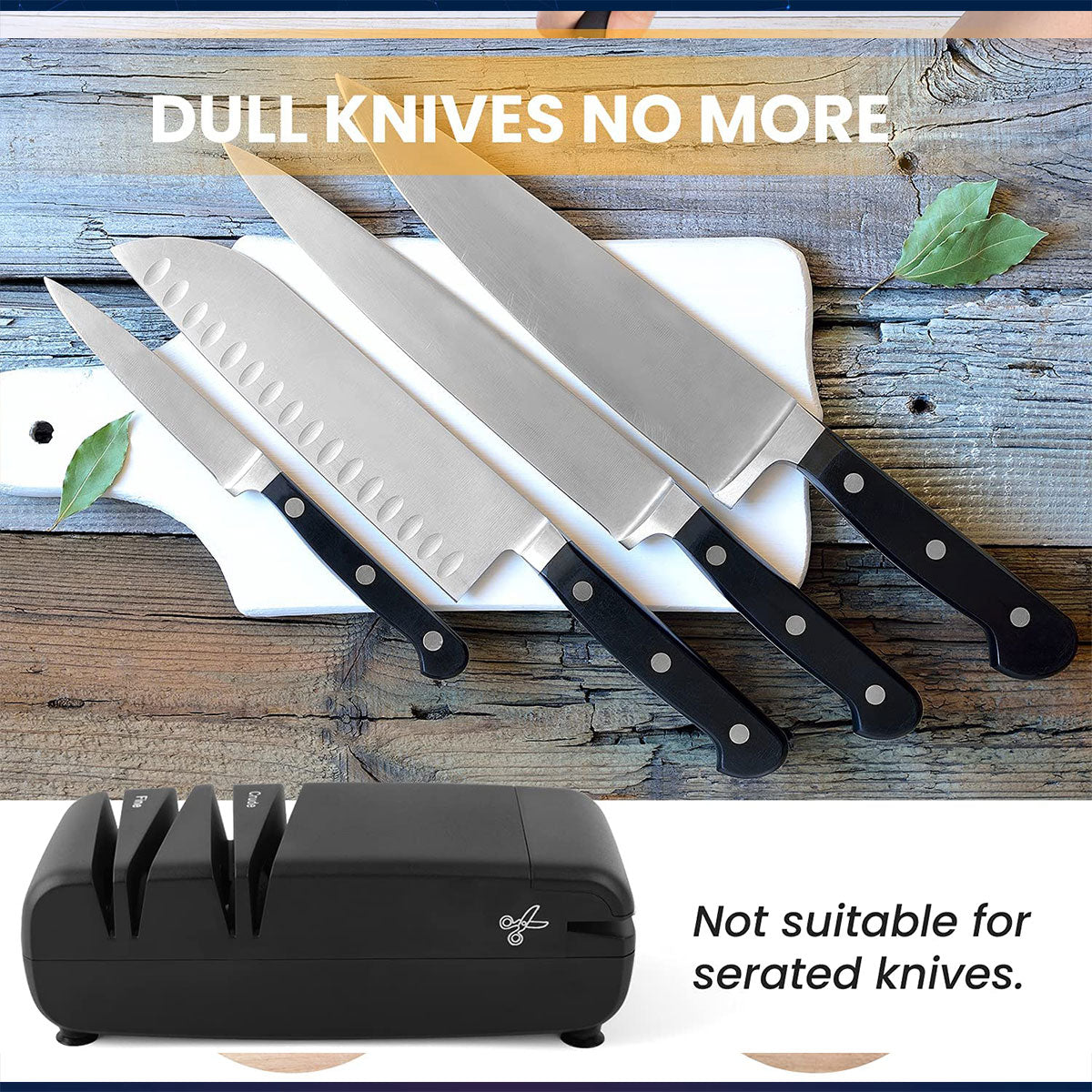 - Coming with User Mannual, you can quickly and effectively get started with this electric knife sharpener. Economically, making knives scissors like new, getting professional results on most non-serrated blade at home.