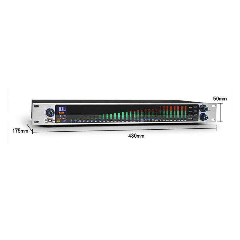 - 31-band spectrum adjustment: EQ-313 is a 31-band DSP equalizer. Each spectrum is equipped with LCD spectrum display lights, which shows the changes of 31 frequency bands in real time.