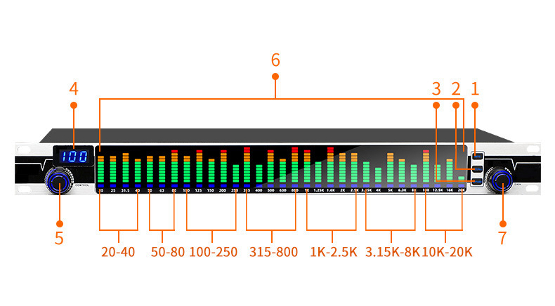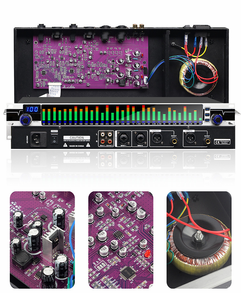 - 31-band DSP processing equalizer. Two-channel synchronous control 31-band DSP processing equalizer, each with LED spectrum indication, real-time display of frequency changes and its accuracy is 99.9%