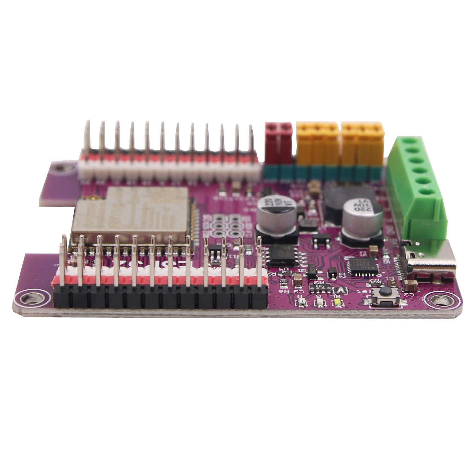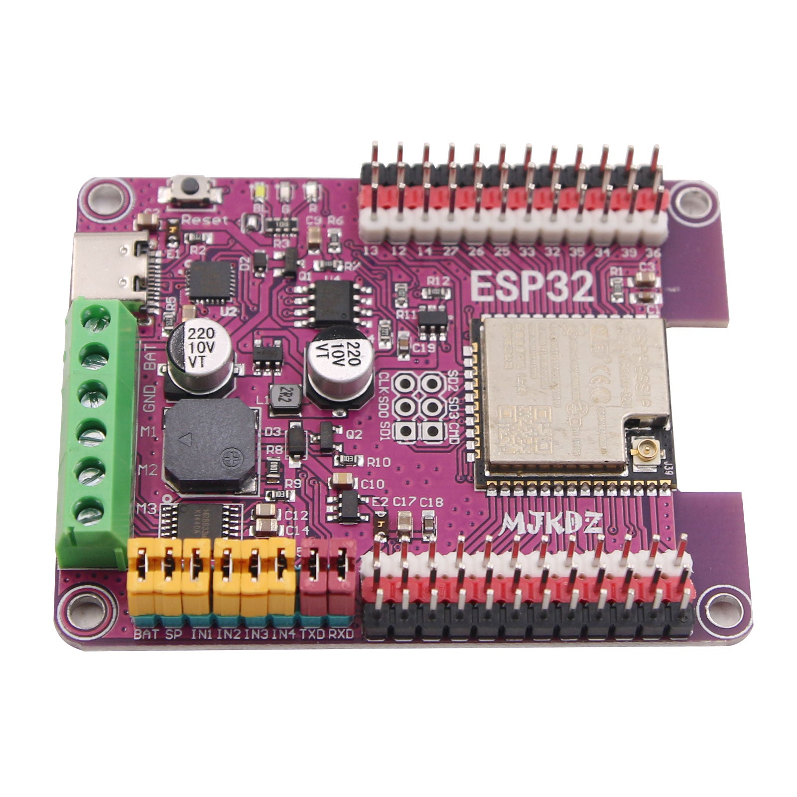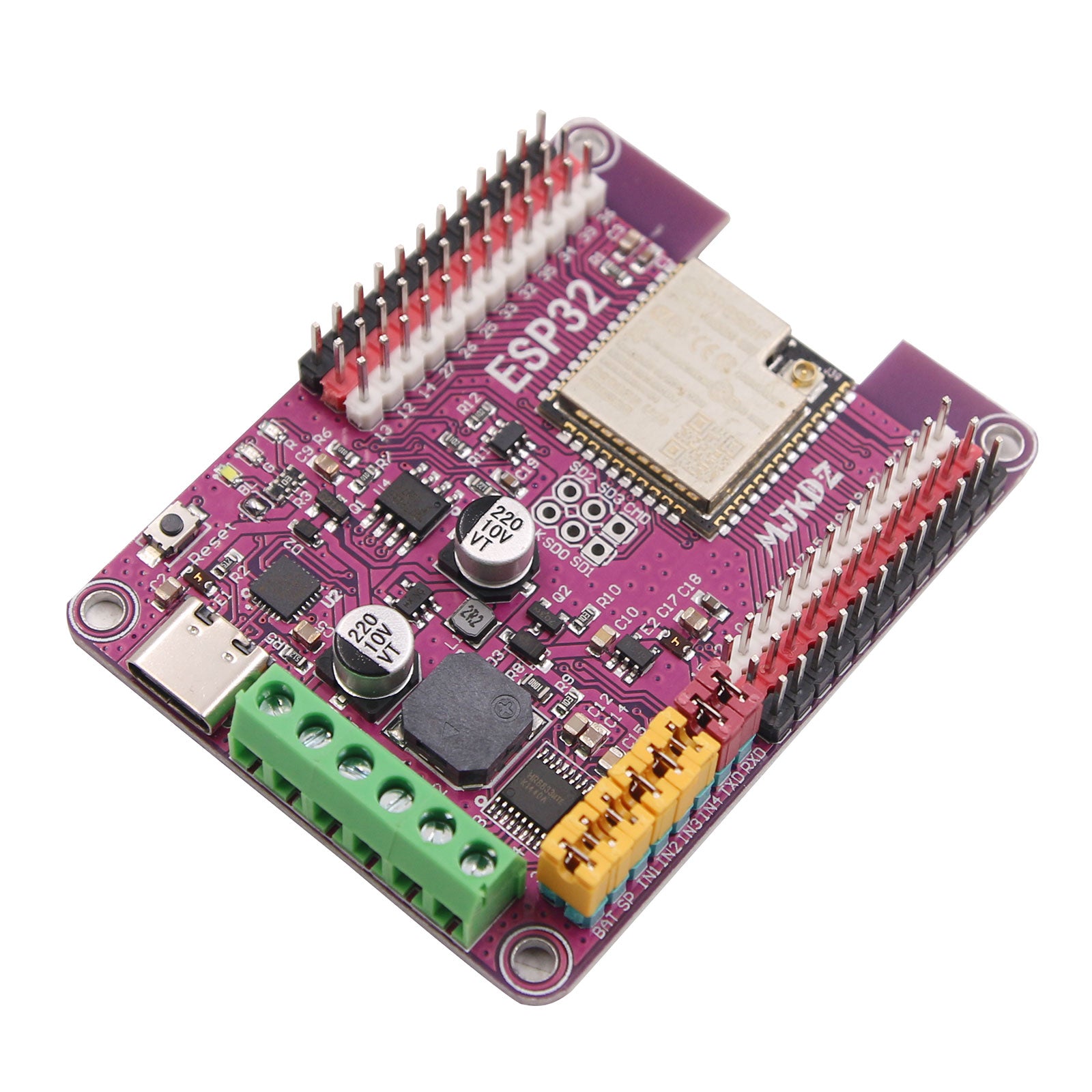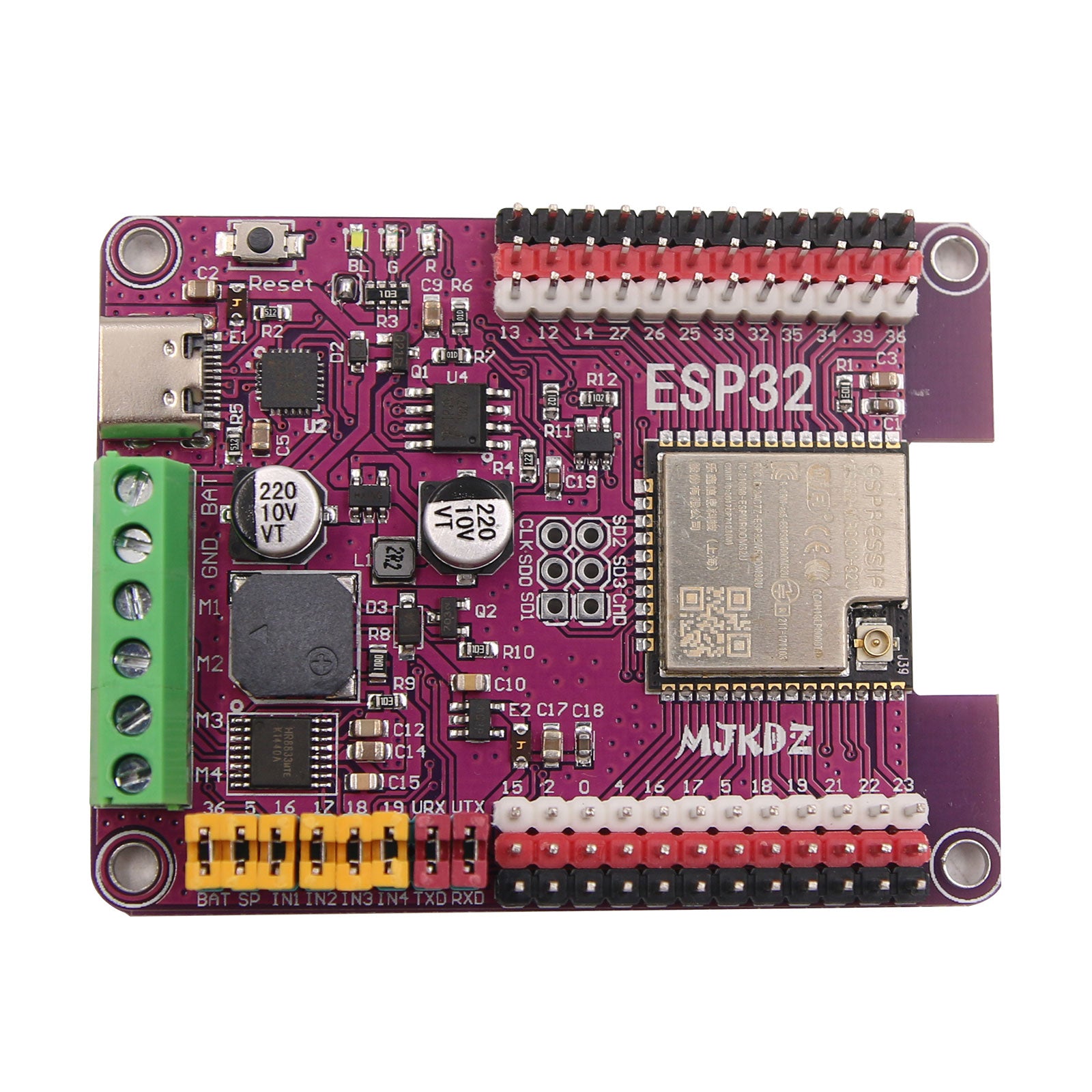 The control board uses ESP32 module, which support for development via Arduino compiler. It features a simple compiler interface, one-click download code, a rich function library, and a free and open source environment. Other compiler environments are also supported. The ESP32 module on the development board has a built-in Hall sensor, integrated two-way DC motor drive circuit, voltage measurement circuit, buzzer circuit, charging circuit, USB to serial circuit, automatic code downloading circuit, and dual power supply circuit. Detailed development tutorials and examples are provided for users.