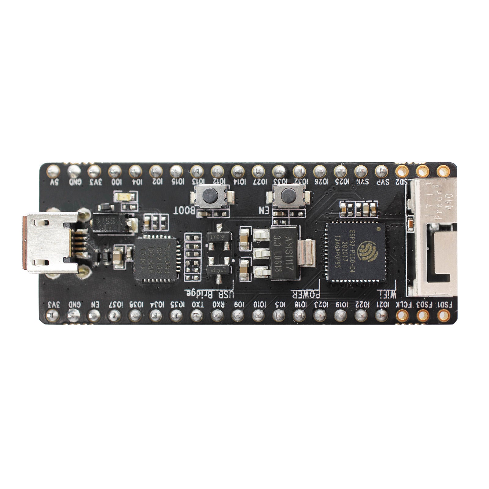 The core of this board is ESP32-PICO-D4 - a System-in-Package (SiP) module with complete Wi-Fi and Bluetooth functionalities. Compared to other ESP32 modules, ESP32-PICO-D4 integrates the following peripheral components in one single package, which otherwise would need to be installed separately: