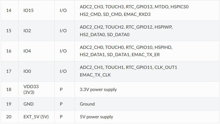 4.The operating voltage of ESP32-PICO-KIT’s embedded SPI flash is 3.3V. Therefore, the strapping pin MTDI should hold bit zero during the module power-on reset. If connected, please make sure that this pin is not held up on reset.