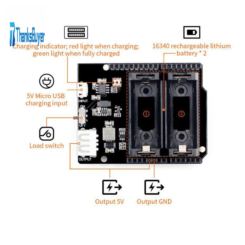 ESP8266 ESP32 Power Supply Rechargeable Dual 16340 Lithium Battery Charger Battery Shield Module 1B4