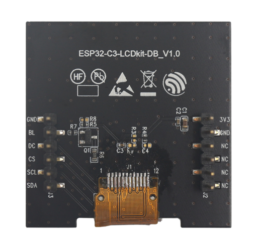 The ESP32-C3-LCDkit_DB sub-board supports a 1.28" LCD screen with SPI interface and 240x240 resolution. The driver chip used for this screen is GC9A01.