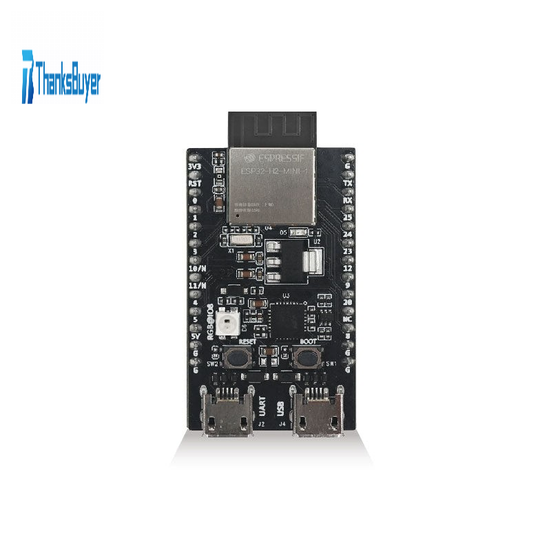 · ESP32-H2-MINI-1: ESP32-H2-MINI-1, with ESP32-H2 inside which integrates a 2.4 GHz transceiver compliant with Bluetooth Low Energy and IEEE 802.15.4-based technologies, supporting Bluetooth 5 (LE), Bluetooth mesh, Thread, Matter, and Zigbee. This module is specially designed for all kinds of low-power IoT applications.