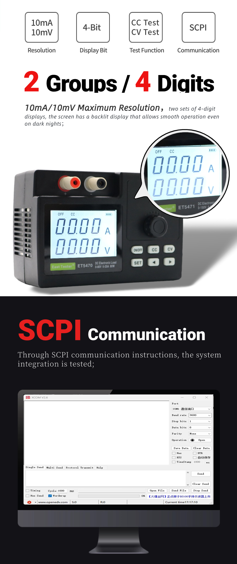 - In the communication mode, it supports constant voltage, constant current, constant power, constant resistance, dynamic and scanning functions.