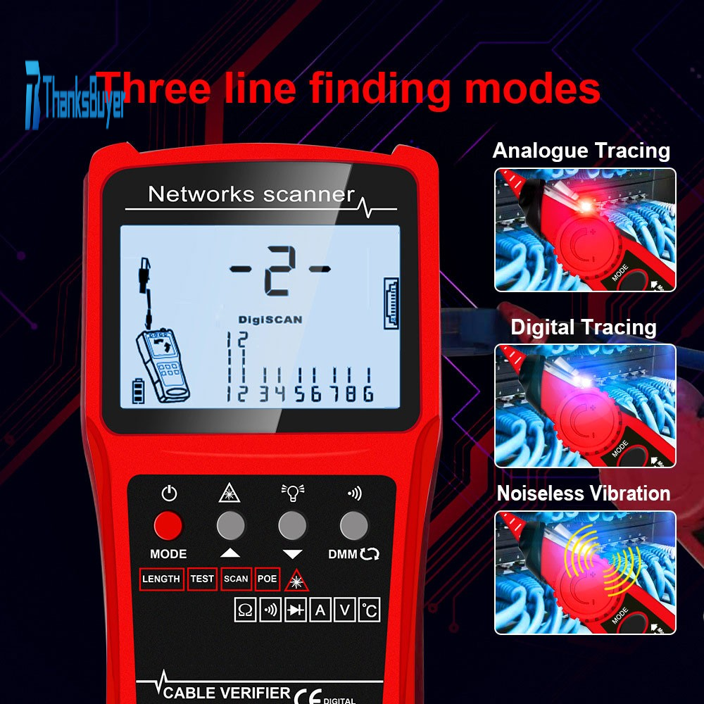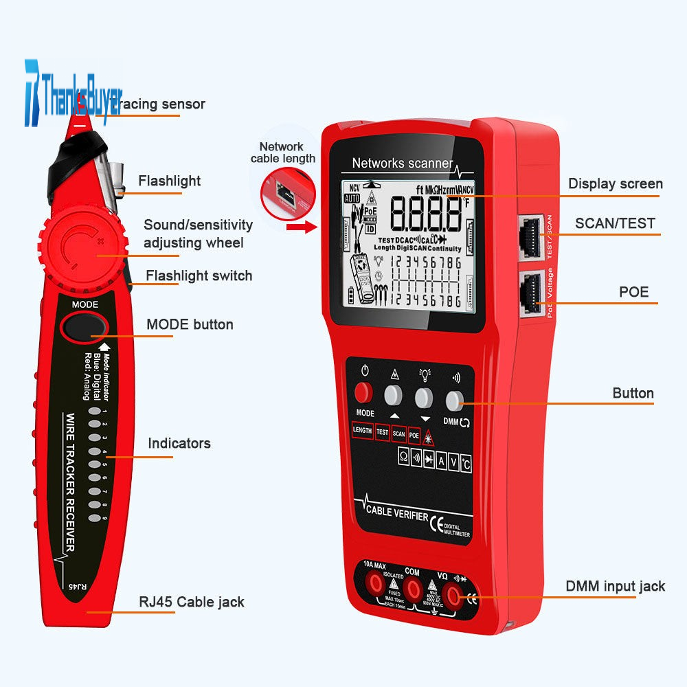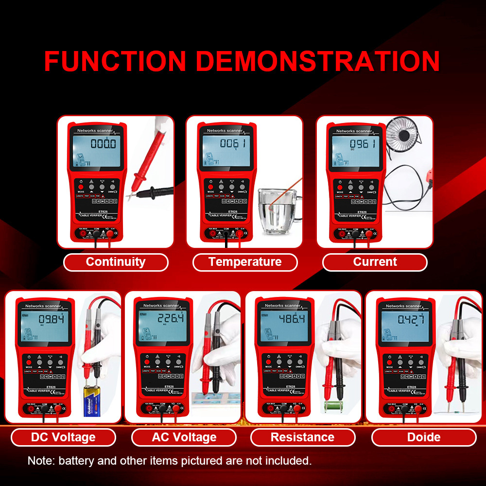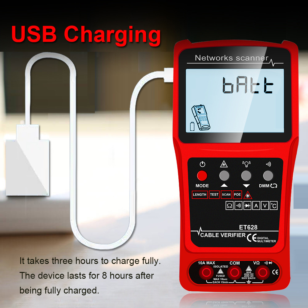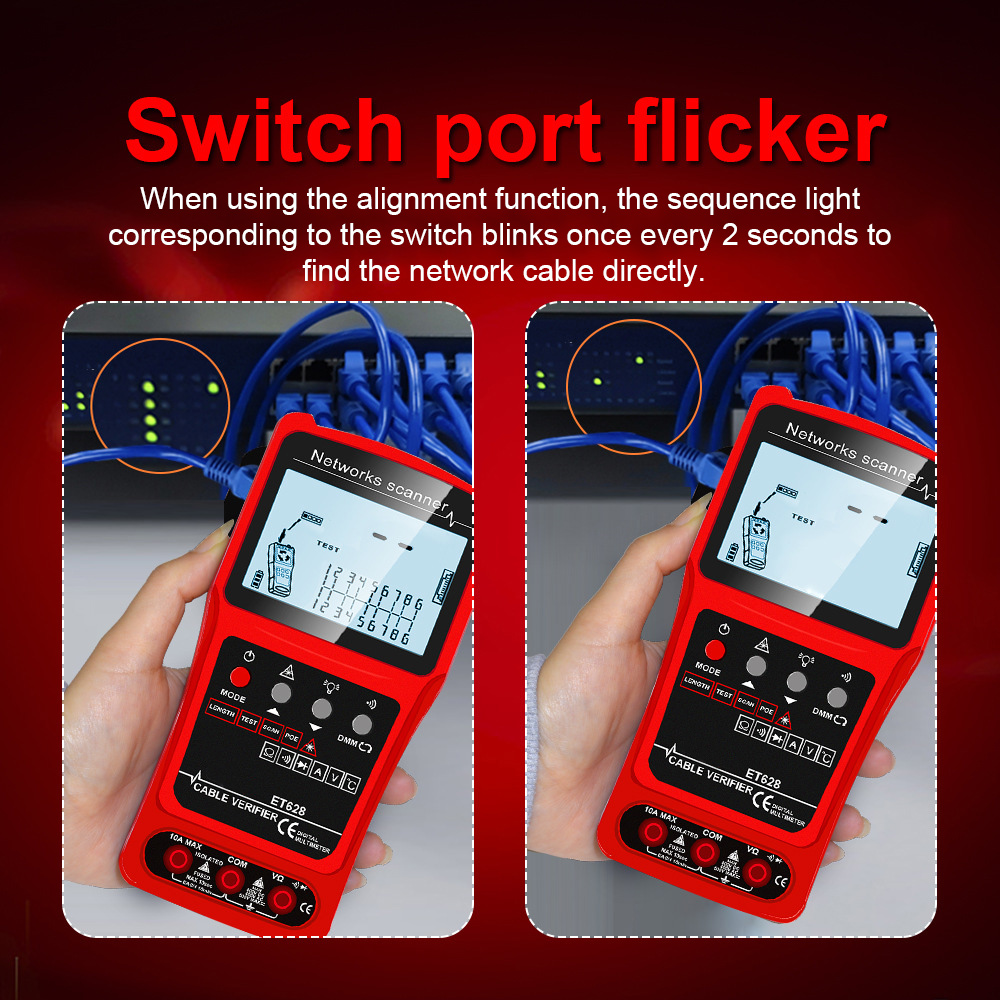 ET628 3-in-1 Multimeter Network Cable Tester Visual Fault Locator Kit with K-Type Temperature Probe
