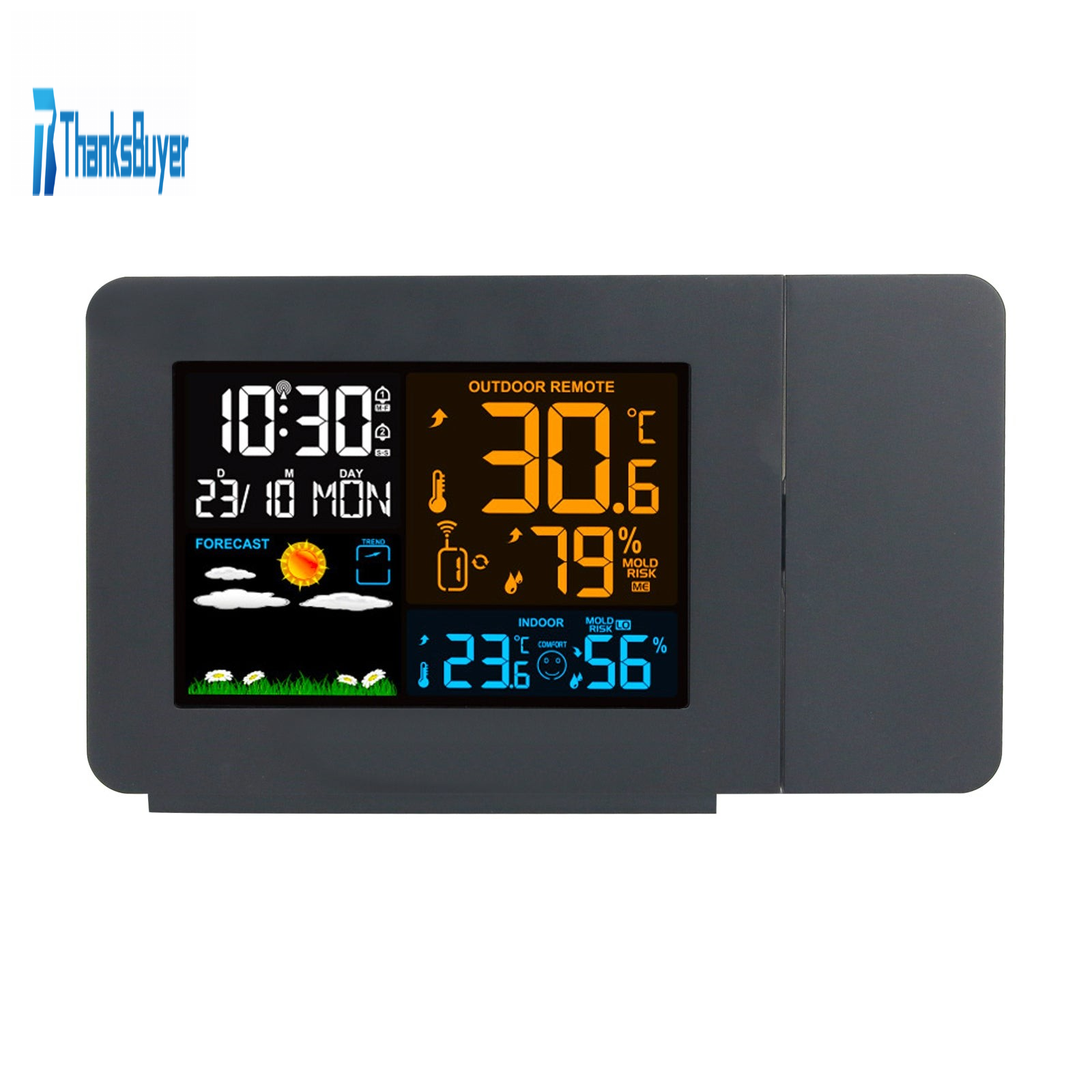 - 2 in 1: Color screen multifunctional weather clock and projection alarm clock