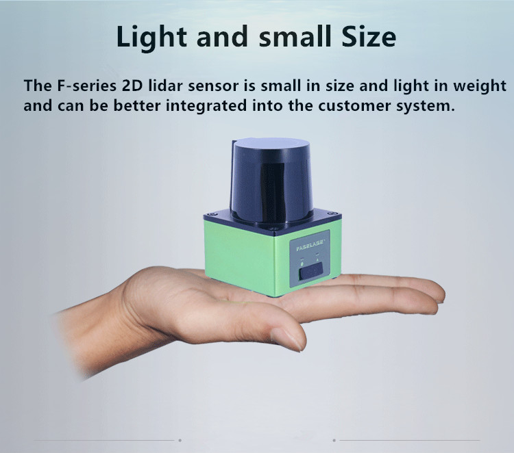 The F series lidar is a new compact, affordable 2D lidar with FsaeLase laser radar. The main features of the products are fast measurement, small size, light weight, small power consumption, low cost. It is mainly used in industrial/commercial robot obstacle avoidance and navigation, screen interaction, safety gate, human flow detection and other fields.