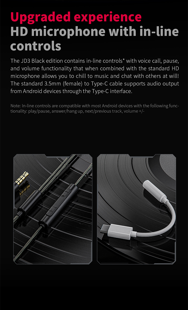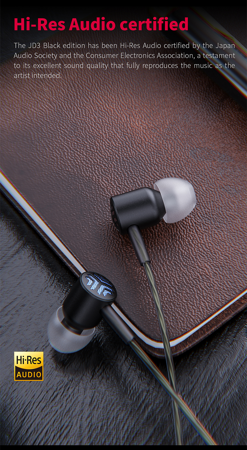 FiiO JD3 Black Earphone HiFi Semi-open Designed Aluminum Alloy Earphone with 3.5mm to Type-C Adapter Cable
