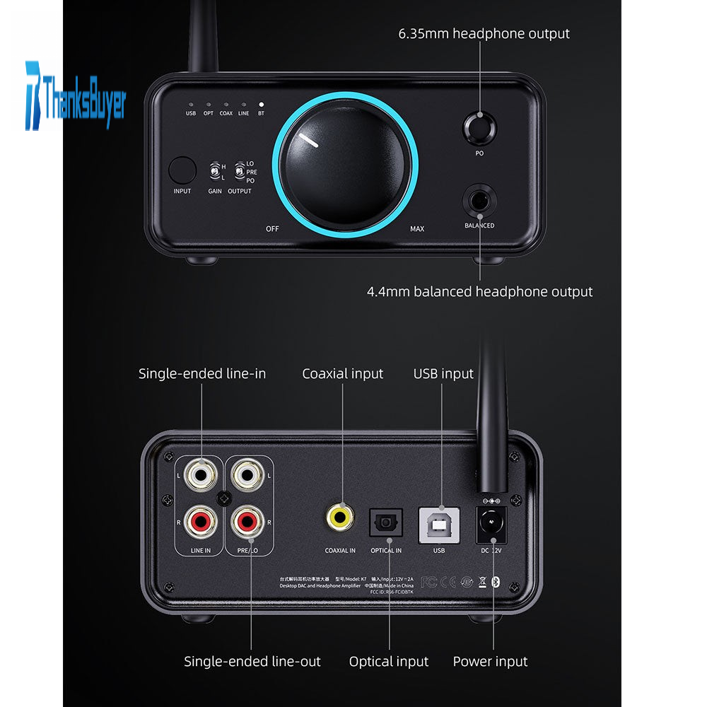 FiiO K7BT Fully Balanced Desktop High Performance DAC Headphone Amplifier THX AAA 788+ Amplifier Bluetooth 5.1