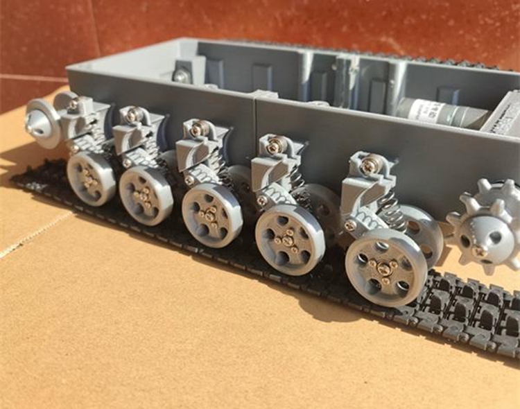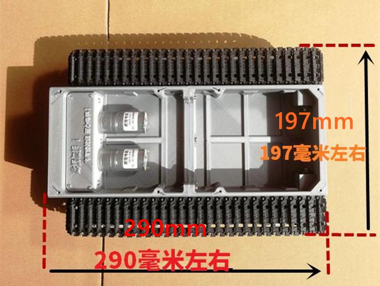 - Adopting two 370 speed reduction motors, each of them separately controls the forward and backward movement of one side of the track, so at least four-channel remote control devices (not included) are required.