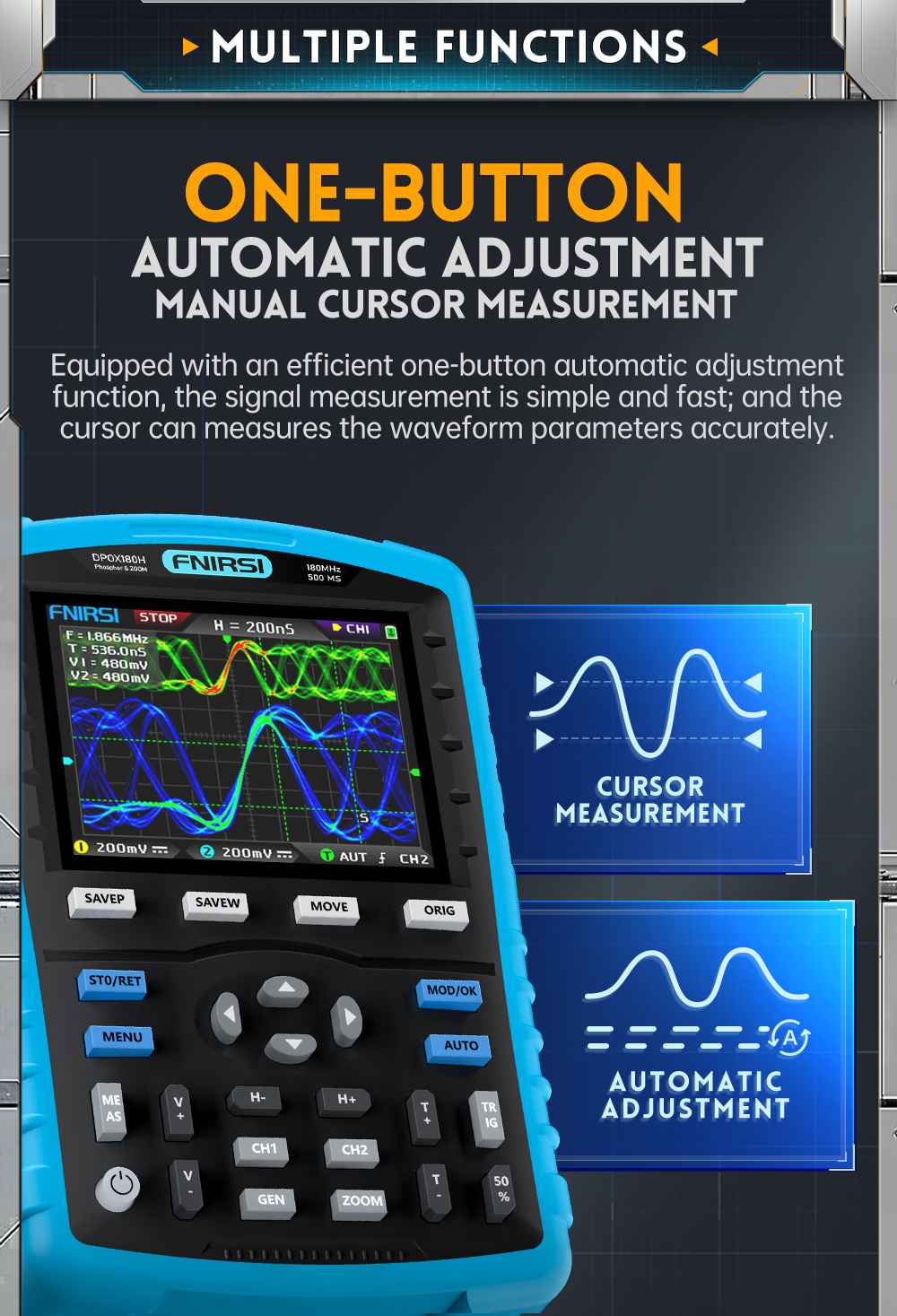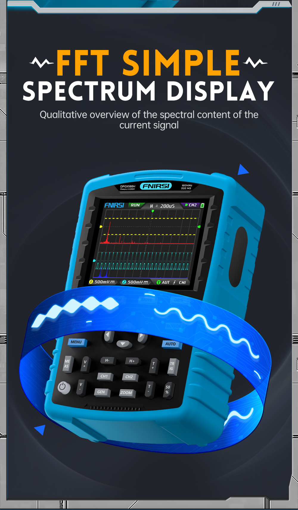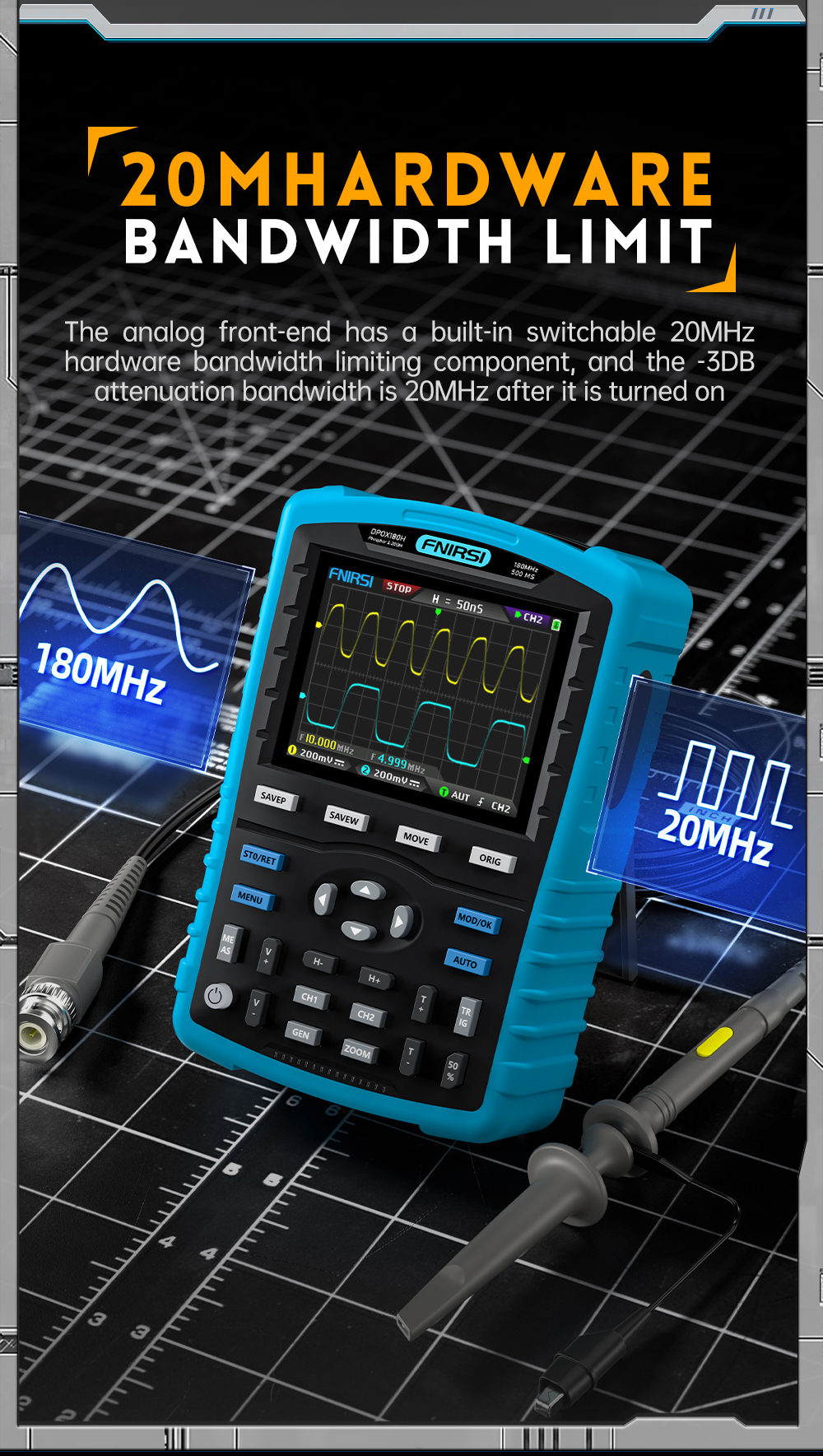 FNIRSI DPOX180H 180MHz -3DB 500MSPS Digital Oscilloscope & Signal Generator for Automobile Repairs