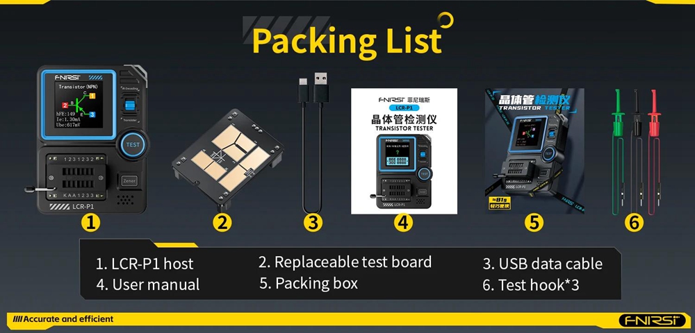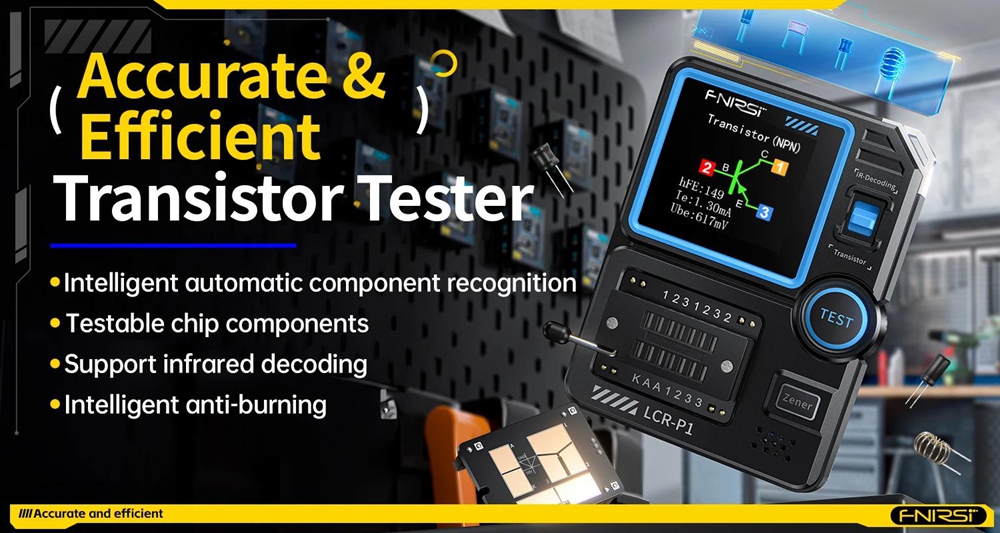 - The LCR-P1 Transistor Tester is a high-precision, multifunctional electronic testing device designed specifically for electronic engineers, technicians, and enthusiasts.This device is intended for detecting and analyzing the performance and characteristics of semiconductor components such as transistors, diodes, triodes, and field-effect transistors (FETs). Equipped with a color screen, it allows for multi-parameter measurement of various components, automatically identifies the type and pin arrangement of the tested component, simplifying the operation process and enhancing testing efficiency.