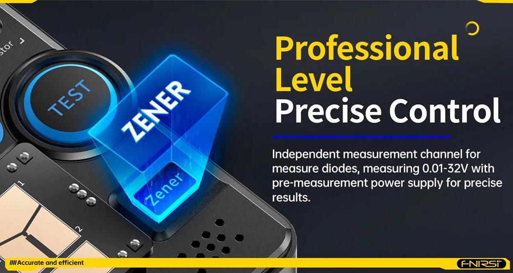 - Zener diode independent measurement: independent measurement channel for measure diodes, measuring 0.01-32V with pre-measurement power supply for precise results.
