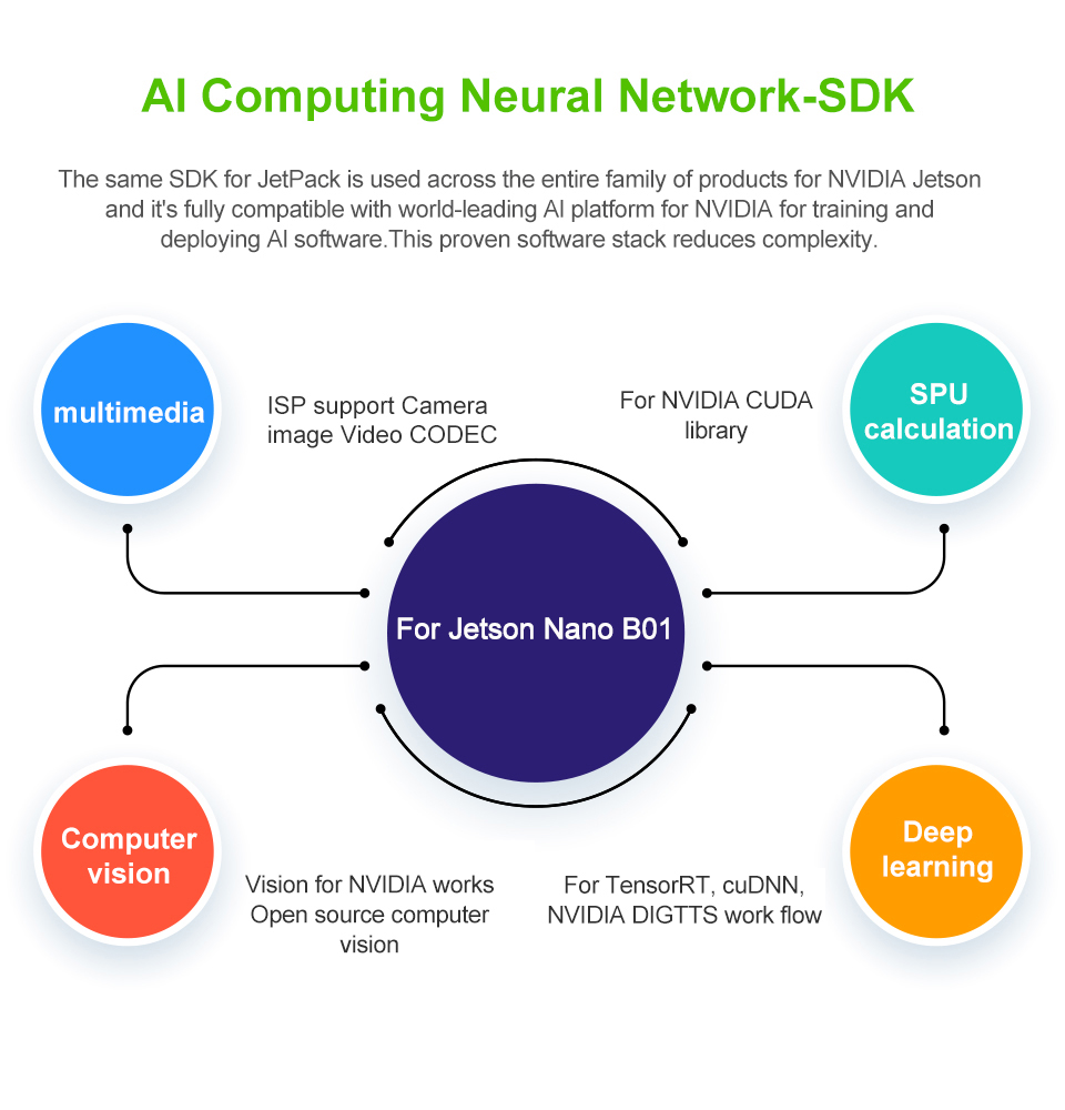 - It is also supported by that for NVIDIA JetPack, which includes a board support package (BSP), for CUDA, for cuDNN, and software libraries for TensorRT for deep learning, computer vision, GPU computing, multimedia processing, and much more. The SDK also includes the ability to natively install popular open source Machine Learning (ML) frameworks for TensorFlow, PyTorch, Caffe / Caffe2, Keras, MXNet and the like, enables the developers to integrate their favorite AI model / AI framework into products fast and easily.