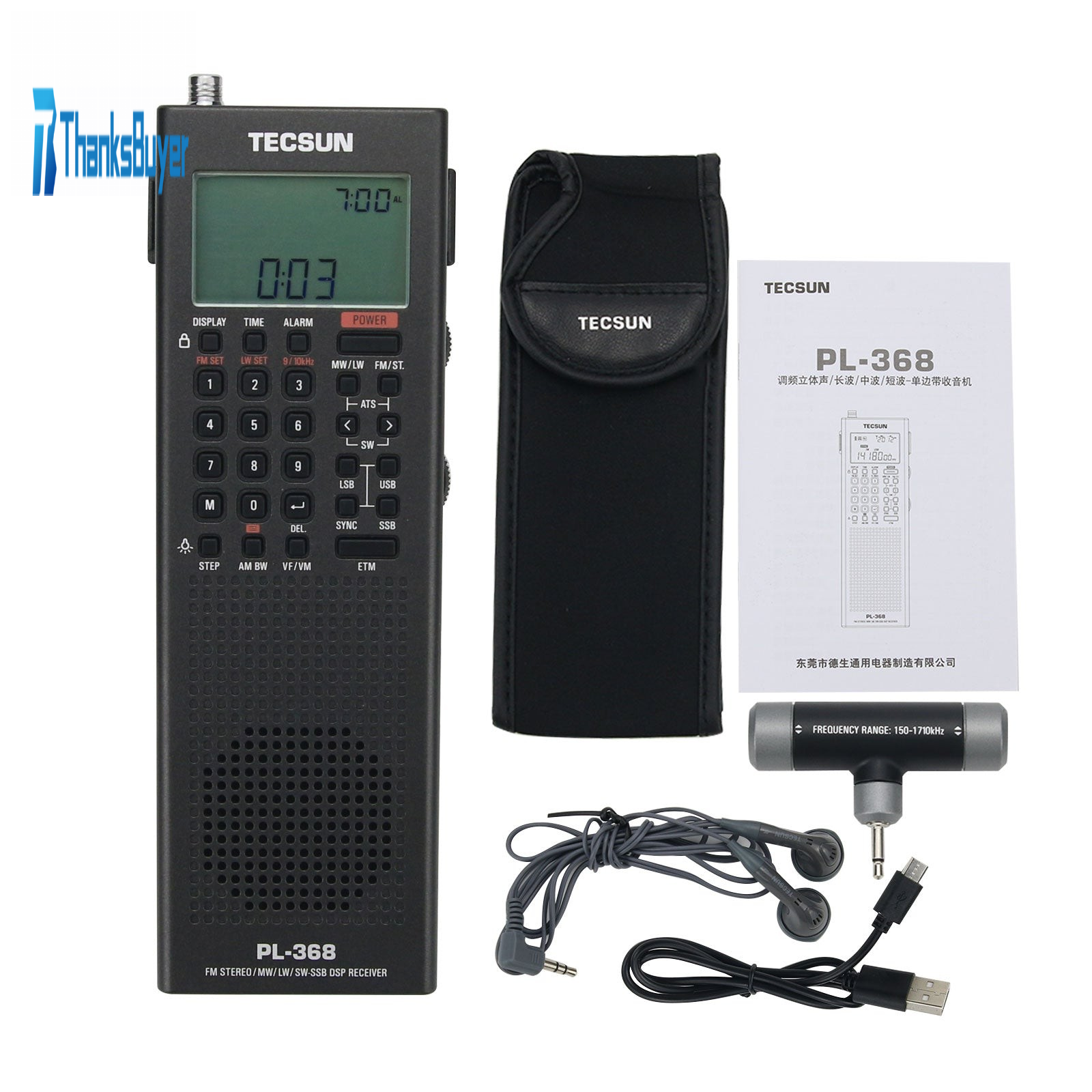 For Tecsun PL-368 Full Band Radio Stereo Radio SSB DSP Radio Digital Demodulation USB Charge Black