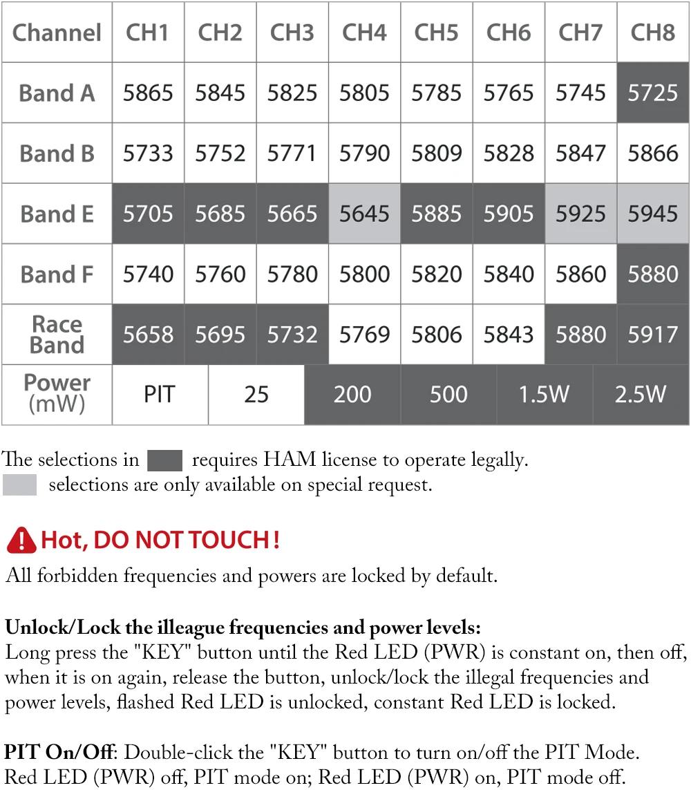 - Power: pit 25/200/500/1.5W/2.5W