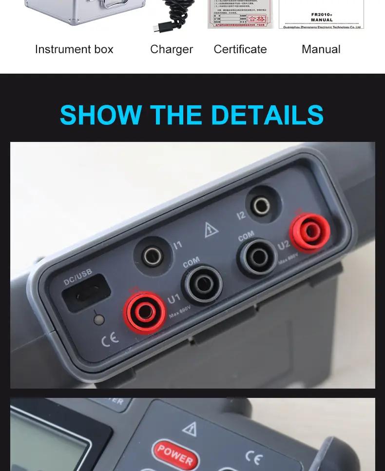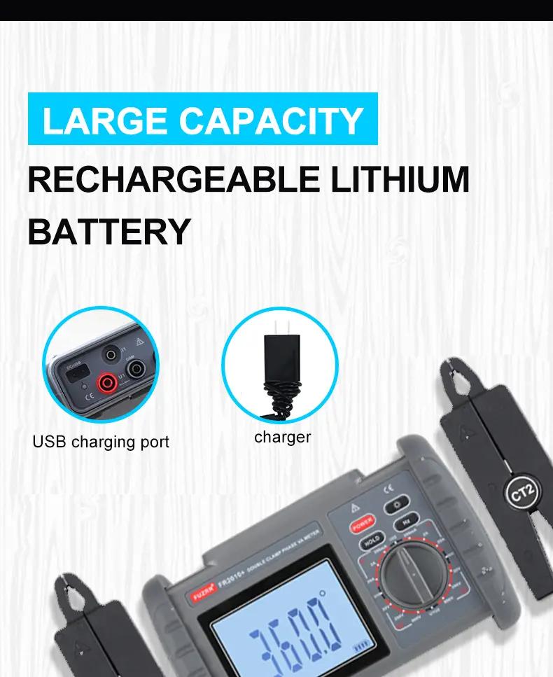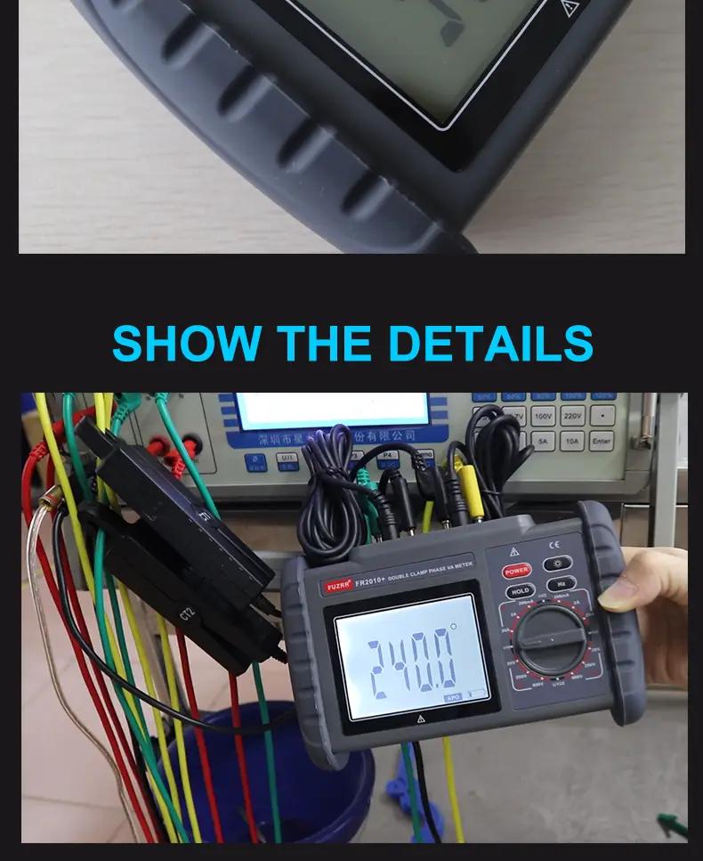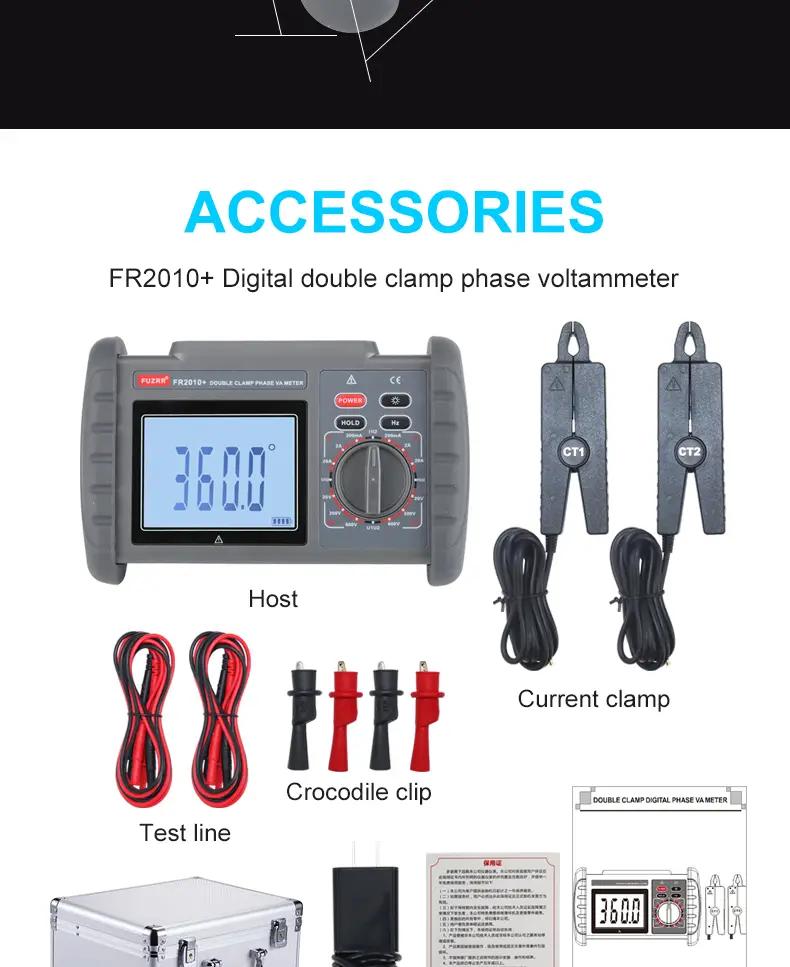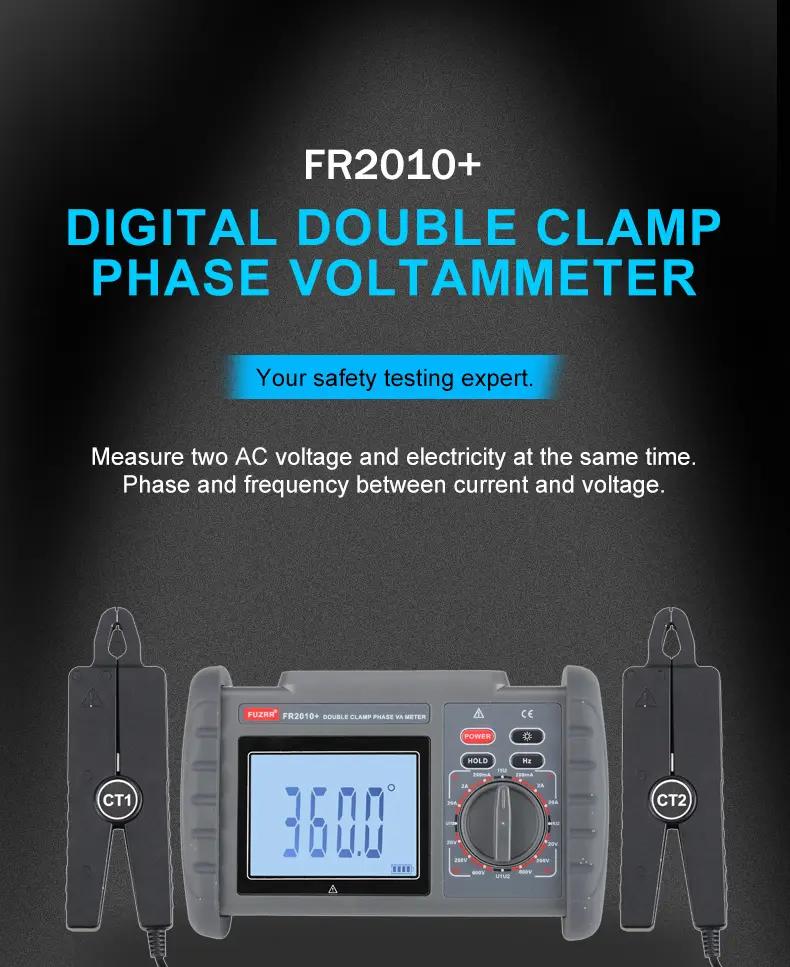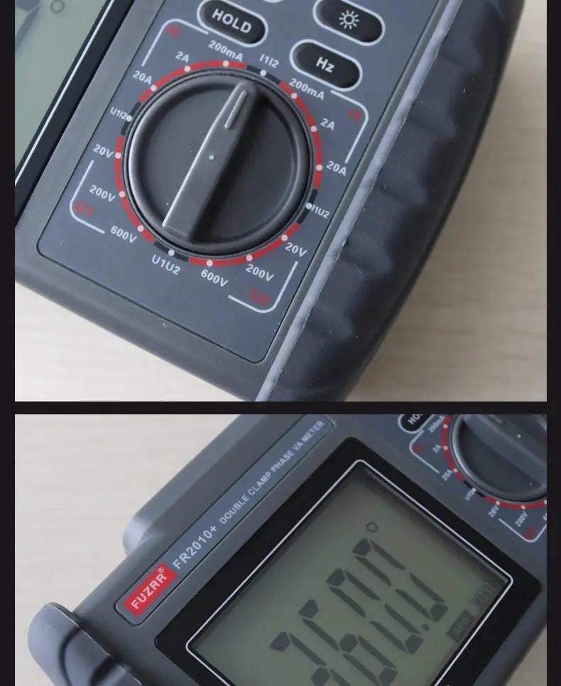 FR2010+ 0-600V 0-20A Double Clamp Digital Phase Volt-ampere Meter LCD Display with 1.5-Meter Testing Cable