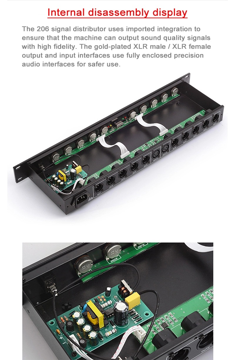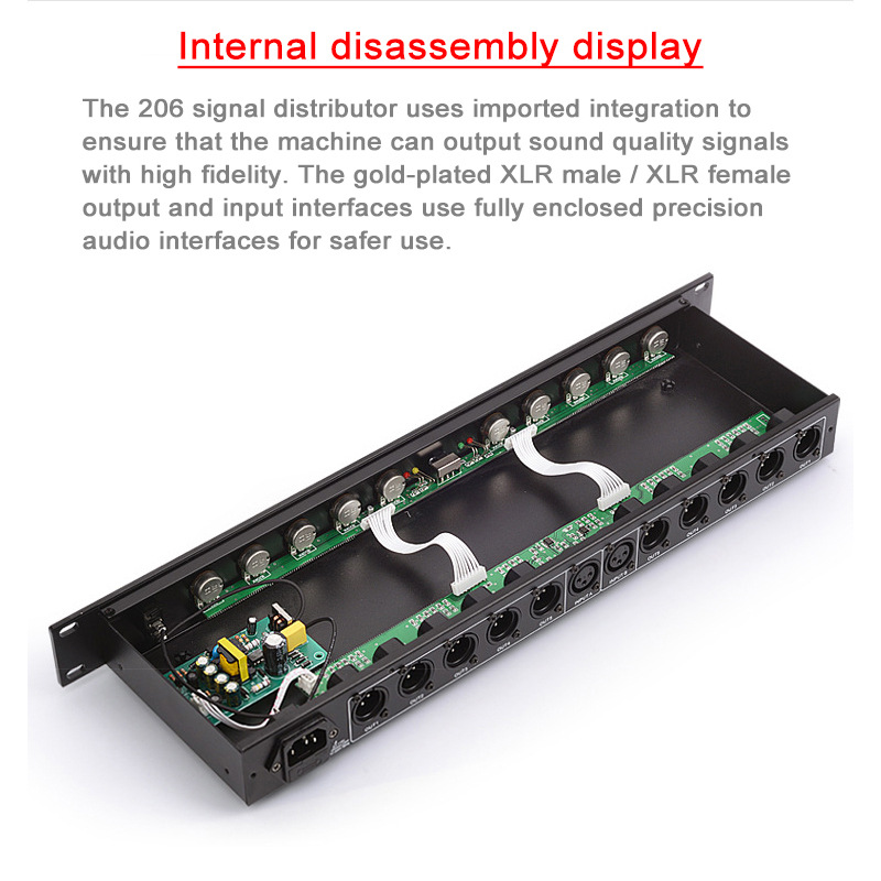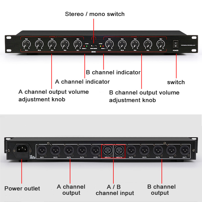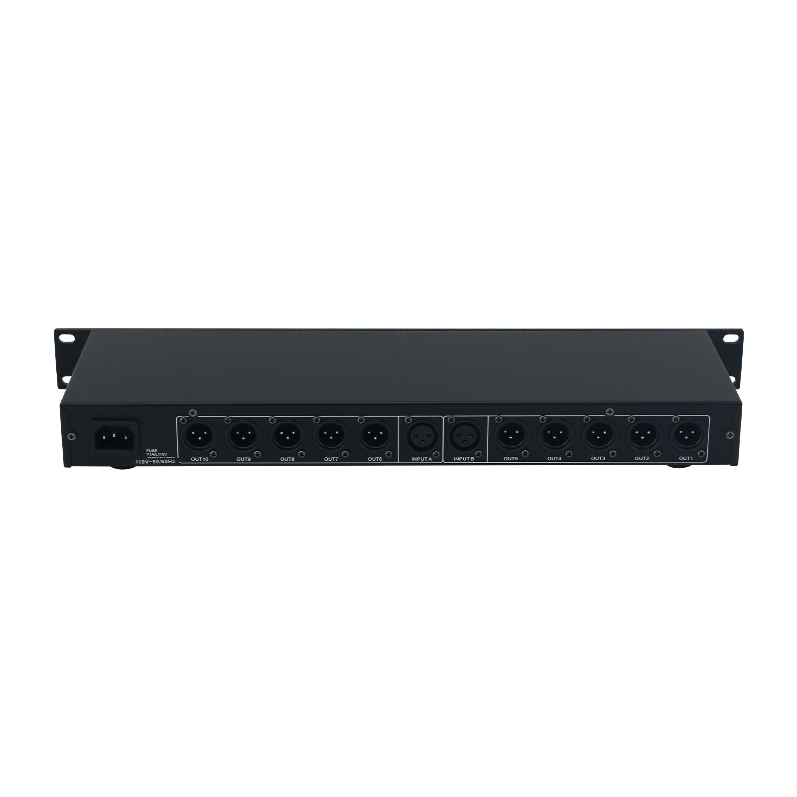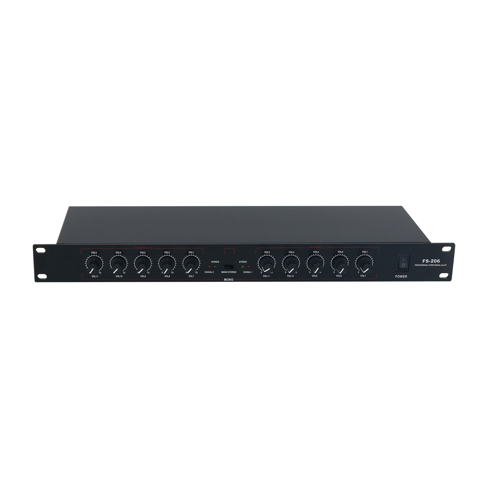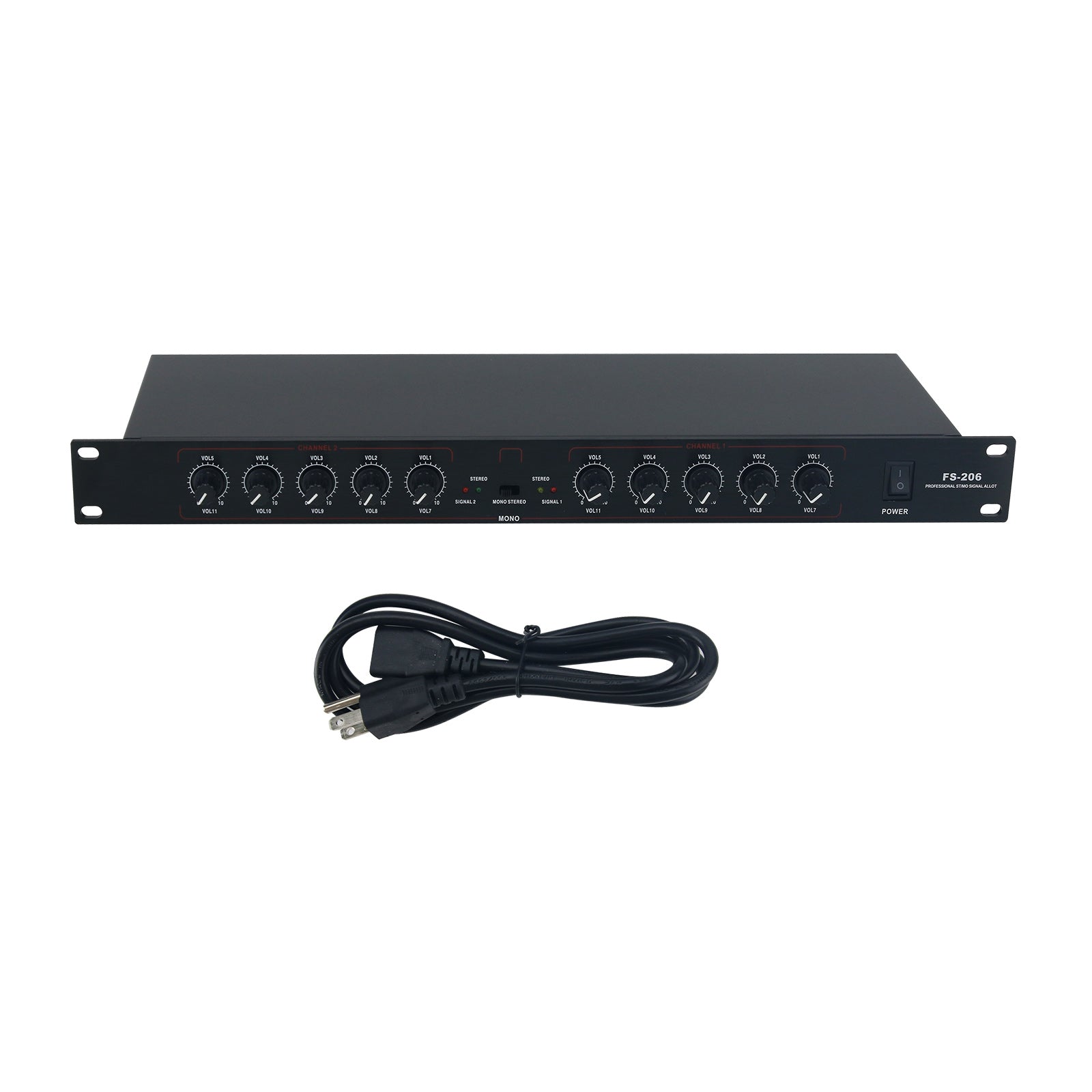 FS-206 Professional Stereo Mono 2 In 10 Out Audio Distributor Stage Performance Audio Splitter 110-220V