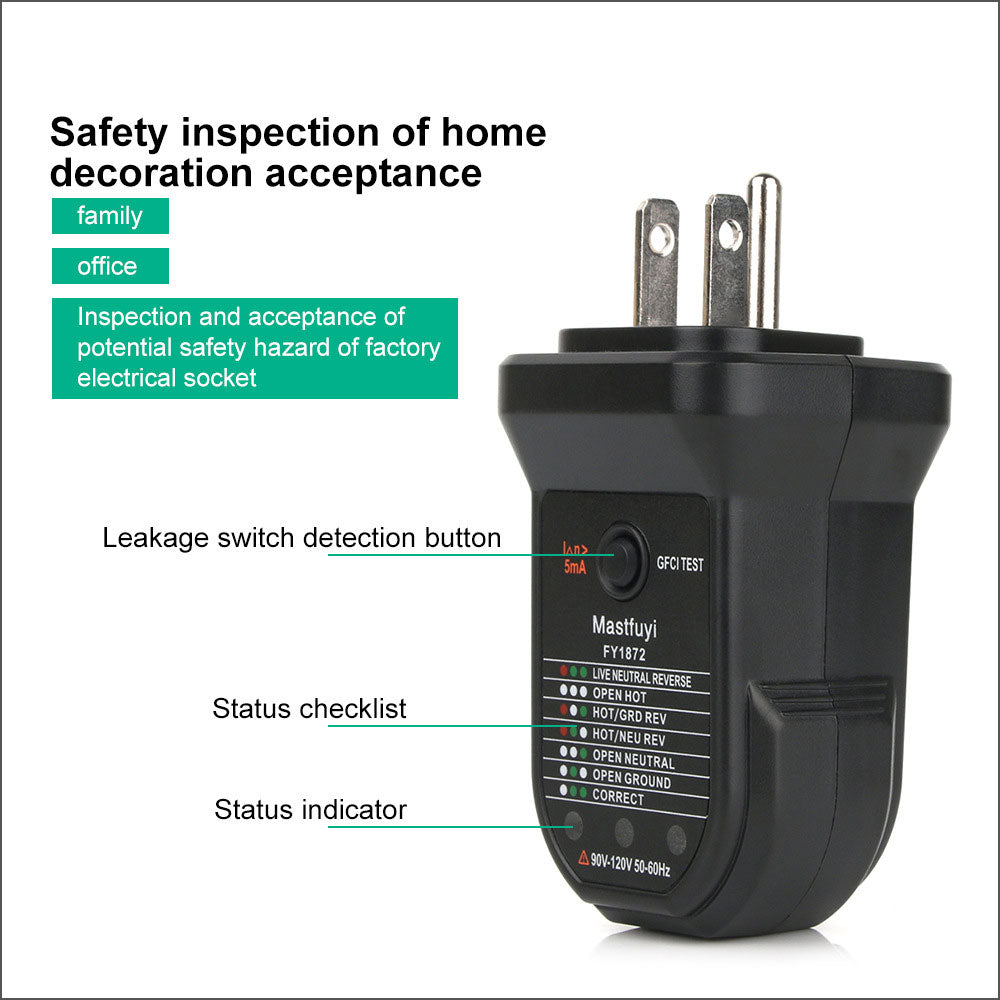 FY1872 90-120V US Socket Tester Outlet Tester Electrical Test Tool Detects Common Wiring Problems