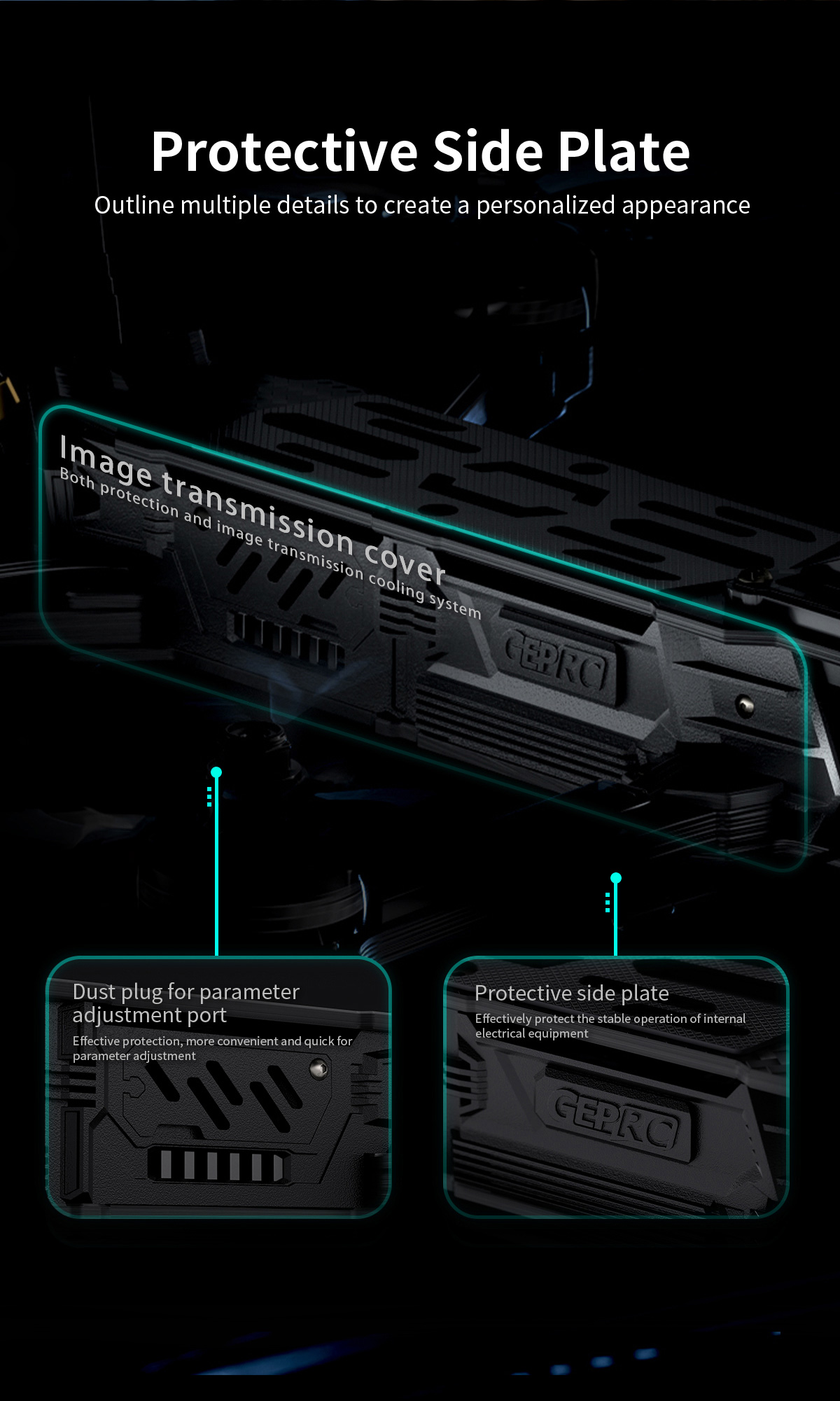 - Innovative camera fixing method, the left and right alternate camera aluminum parts installation position can realize the switching between 19mm and 20mm size. The fixed print of the camera is reinforced with a carbon plate to make the installation force more uniform and avoid warping and deformation.