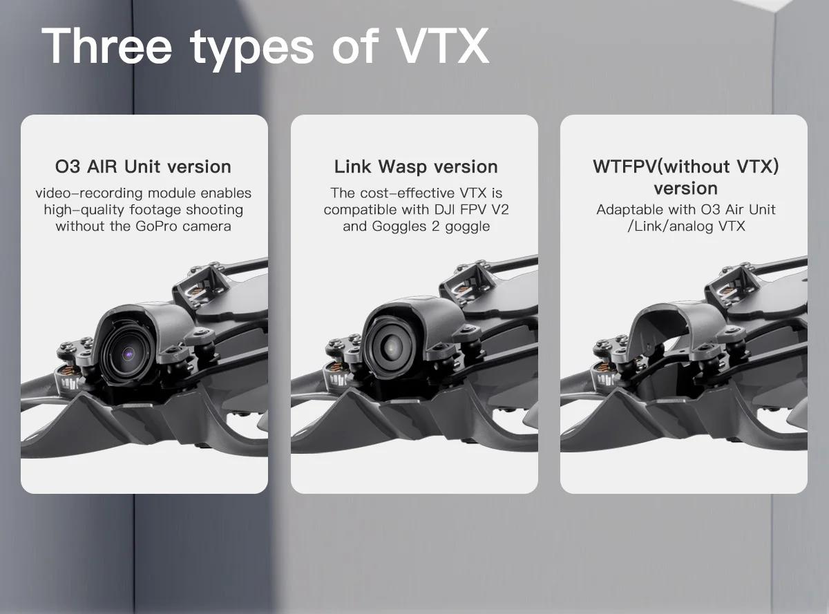 - VTX: O3 Air Unit/Wasp/WTFPV (without VTX)