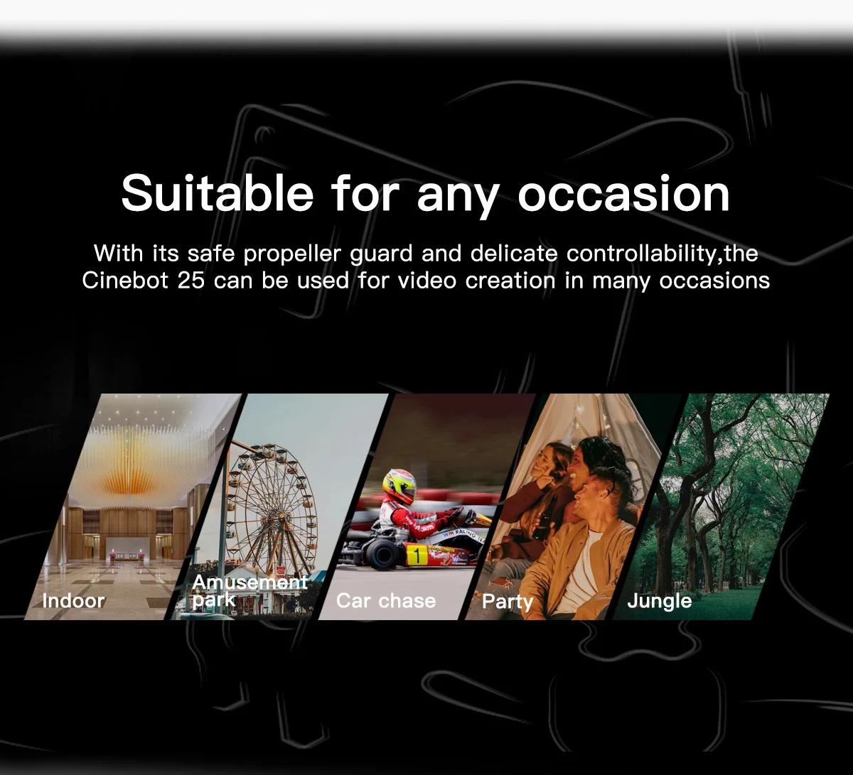 - Cinebot25 is a model that possesses unparalleled controllability and steady aerial footage shooting capability. It will debut with a revolutionary external design and unbelievable performance.