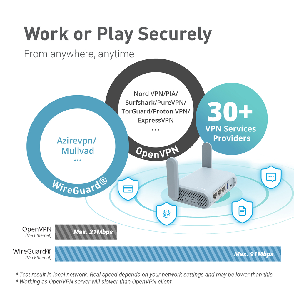 - No More Hackers, Access Home Network Securely: Beryl provides the best encryption and authentication with OpenVPN & WireGuard, just like the other GL.iNet products. Keeping your Internet connection private with multiple VPN protocol support. With our Web UI 3.0, you can set up a VPN server easily and access your files securely in a remote site as if you are at home.