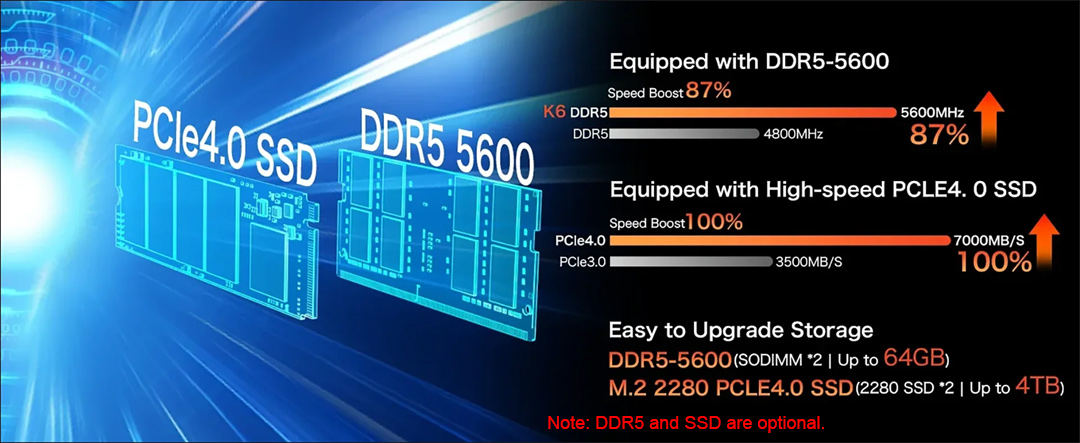 * Storage supports M.2 2280 PCIe 4.0 SSD, expandable up to 4TB per slot