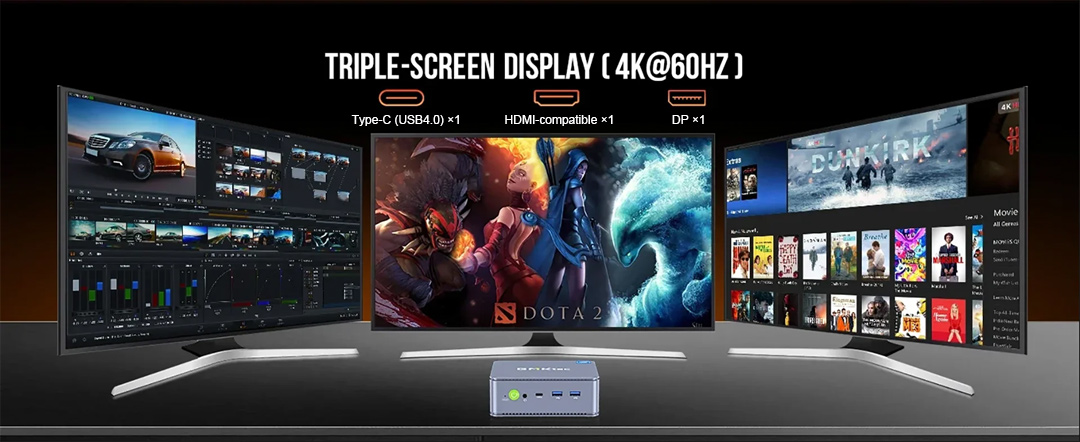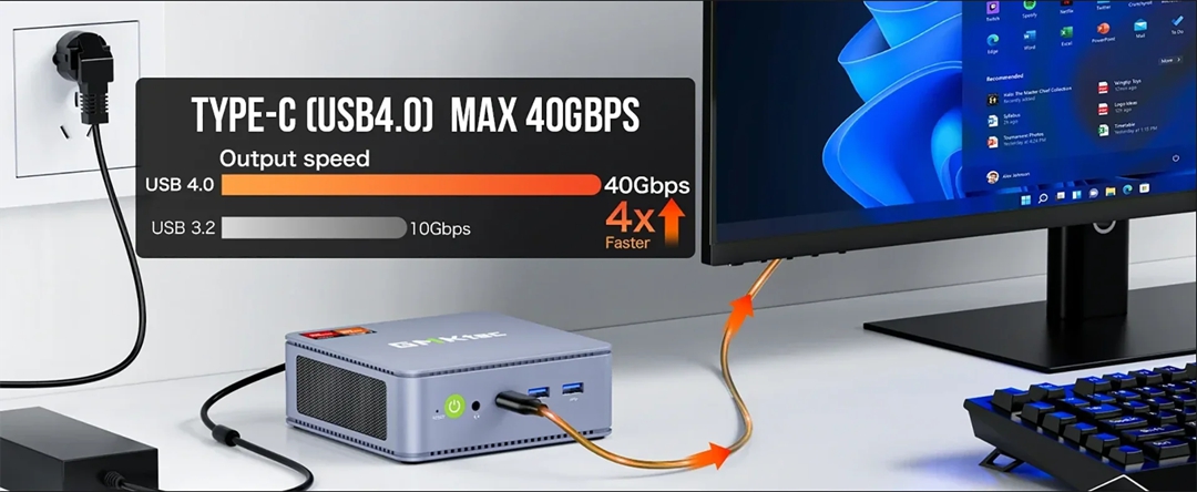 * Ports: HDMI-compatible ×1, DP ×1, and USB4.0 ×1
