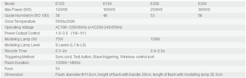 E Series Flash is a lightweight, compact and durable flash with complete functions. Design for shooting studio portrait and e-commerce product. This product is suitable for head shot, waist shoot, and certificate photography, as well as product shooting, etc. It can also offer high light, background light, or hair light in large studios and workshops.