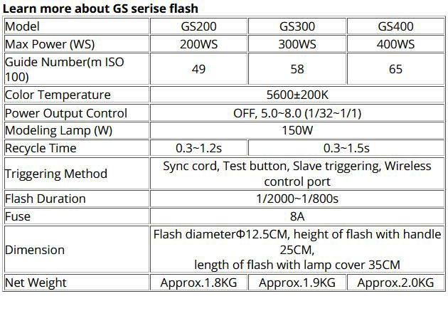 Thanks for choosing Gemini GS series studio flash. It is a durable and good quality strobe with complete functions to help photographers create desired lighting effects. This product is suited for wedding, portrait, and product photography.